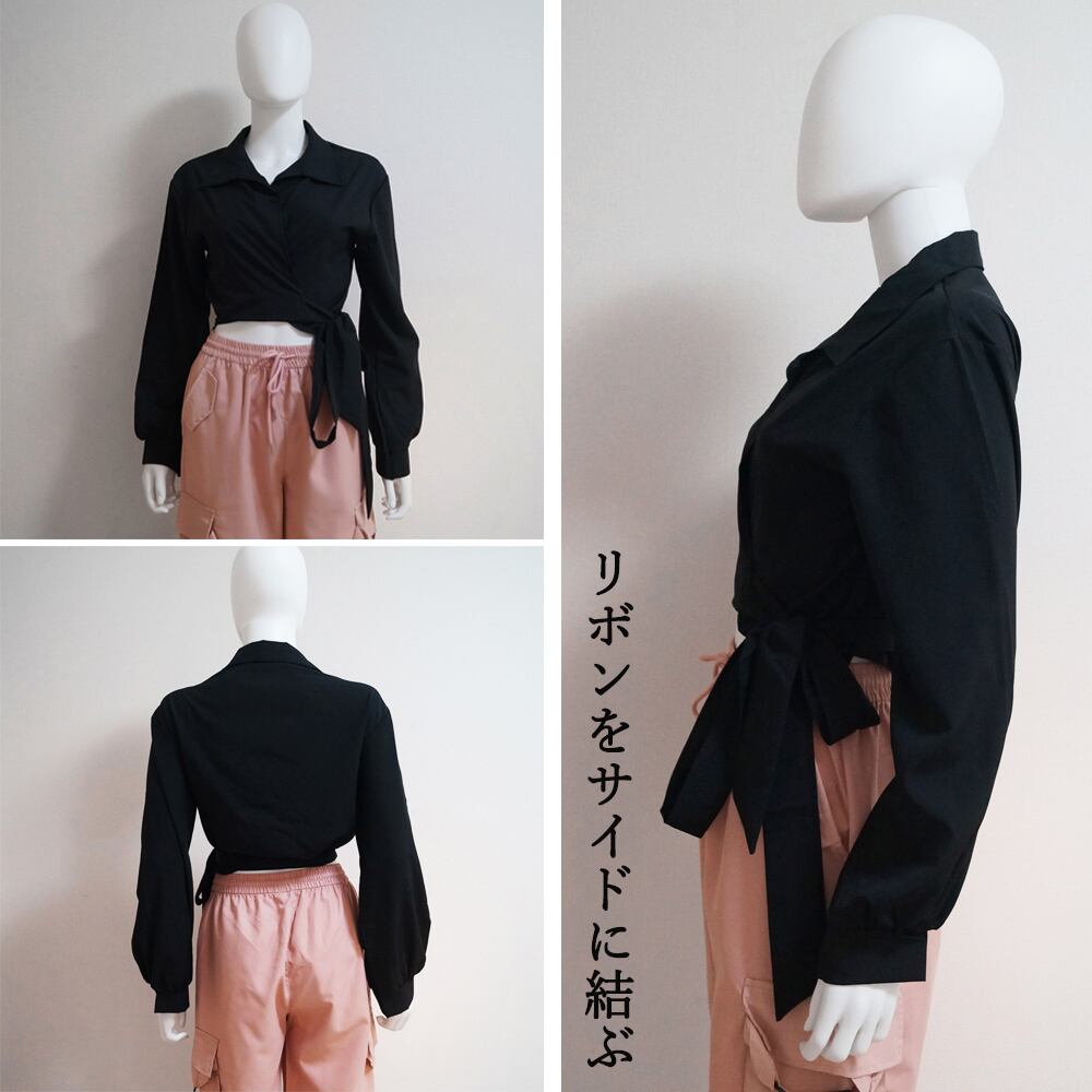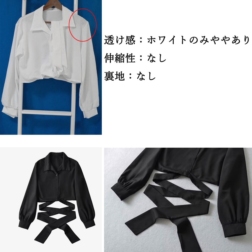 へそ出し 襟付きシャツ リボン レディースファッション クロップド丈トップス Vネック セクシー バックシャン 2way
