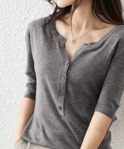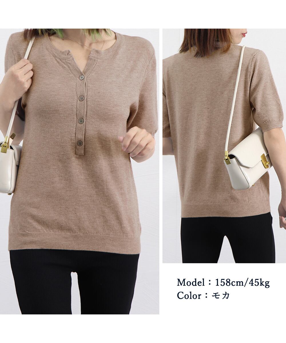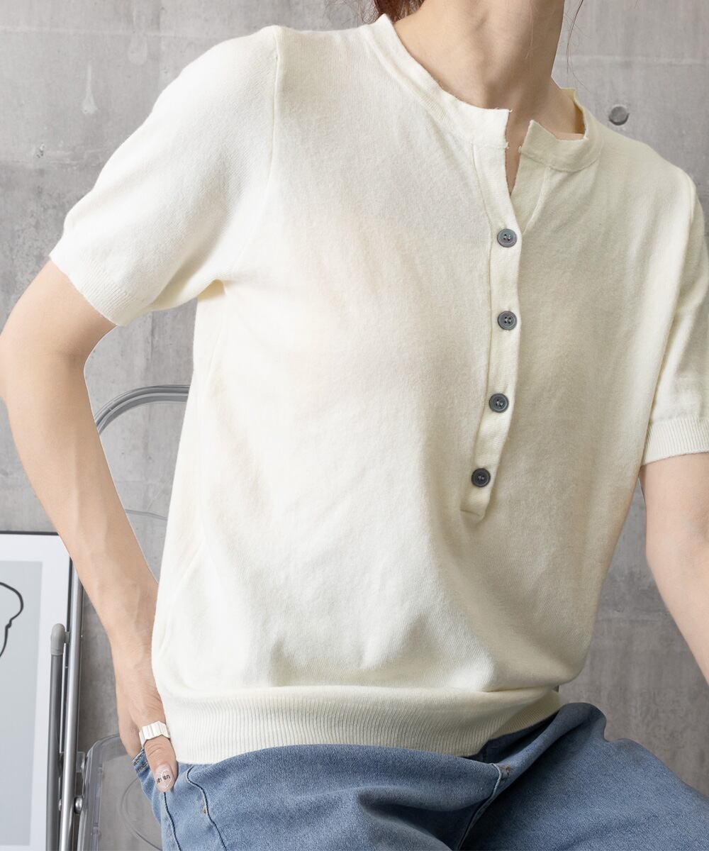 ハーフボタンデザインは大人可愛いサマーニットです