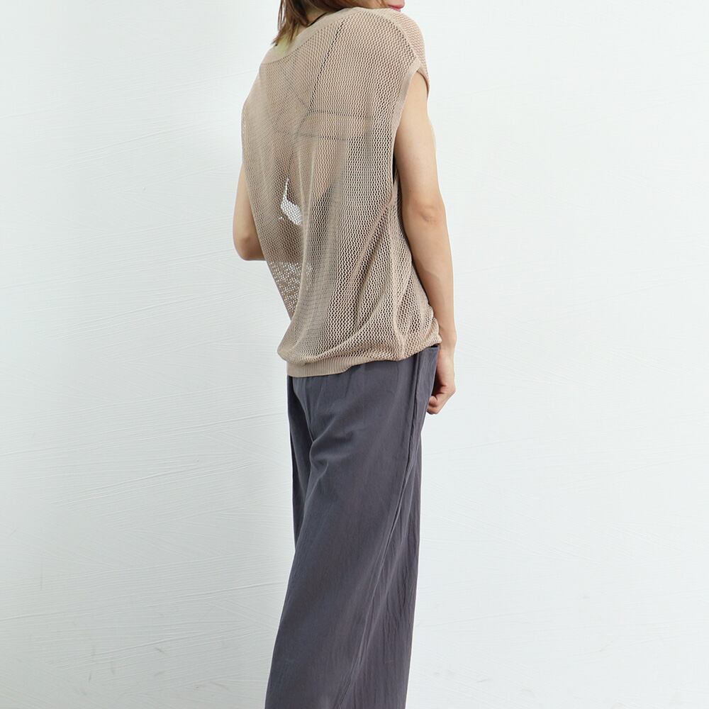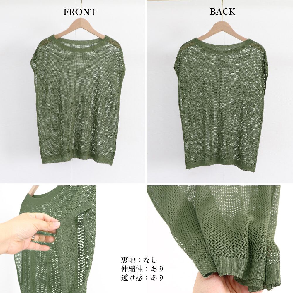 ざっくり編みで抜け感があり、夏に取り入れやすいフレンチ袖の透かし編みトップス