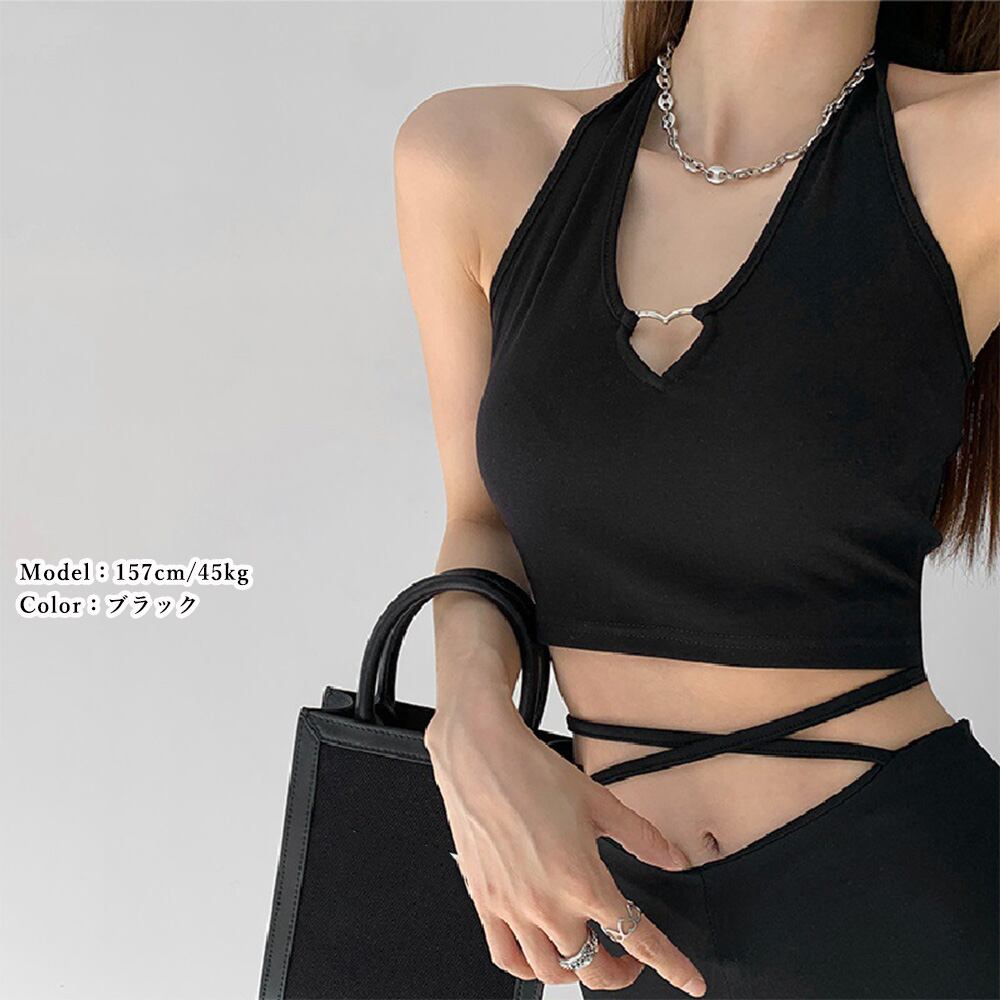 細めリブショート丈 カジュアルセクシー ハートチャーム