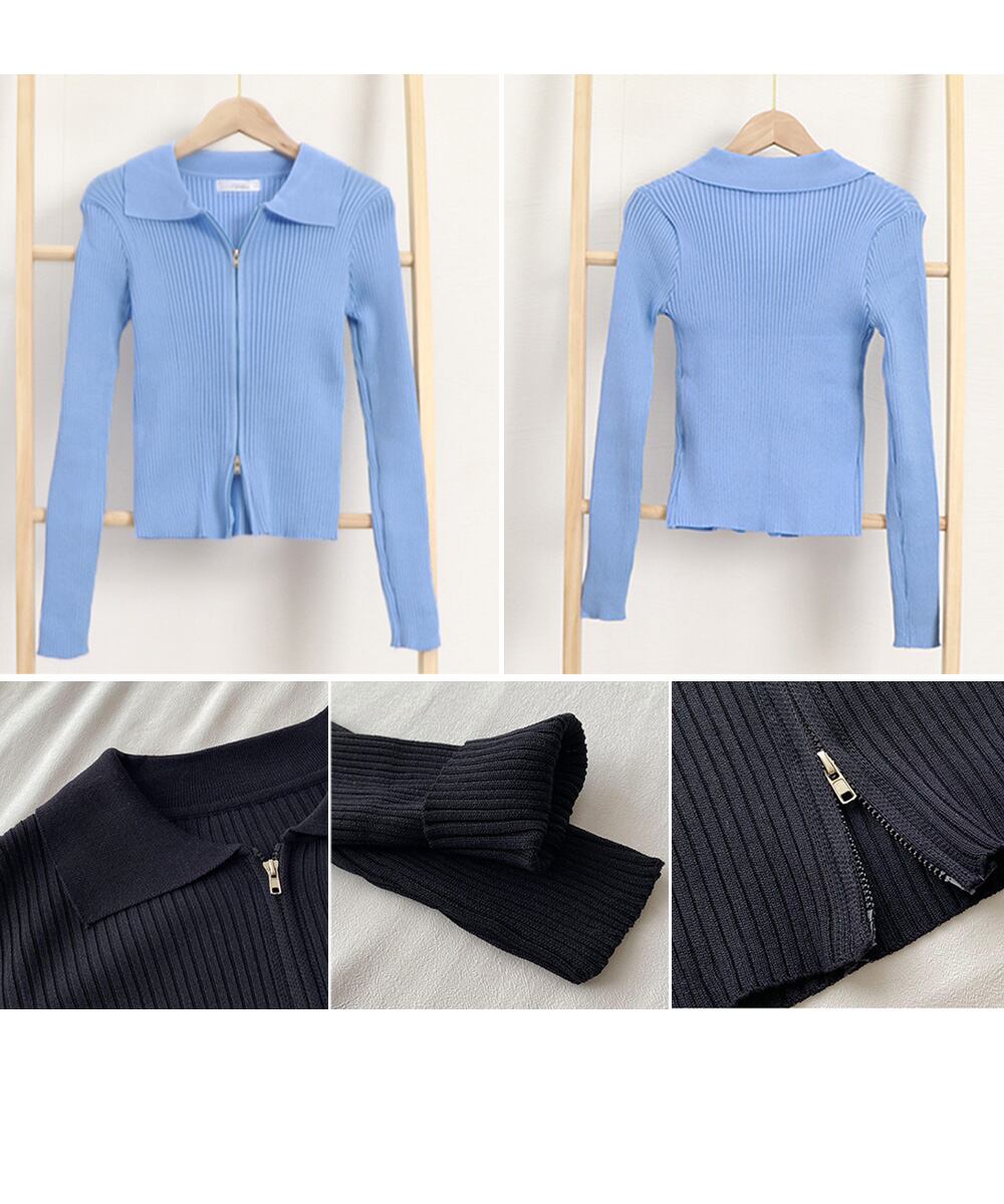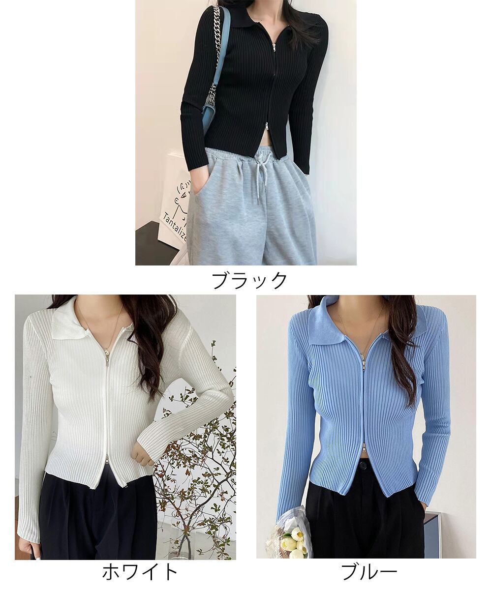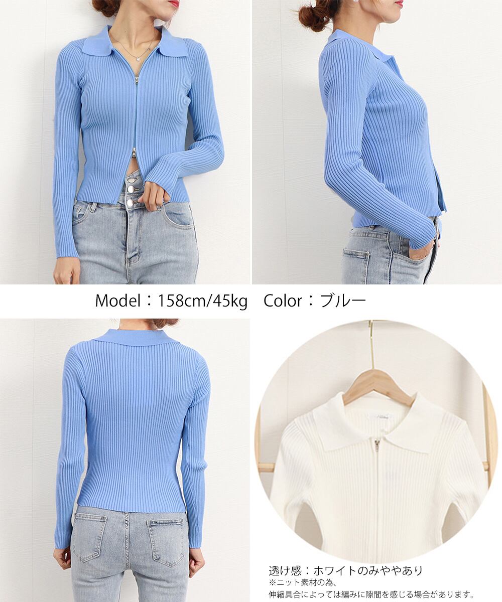 【日本倉庫からの発送】 リブニットトップスレディースジップアップ #[86XANYT-063_14300]【送料込み】【260115】