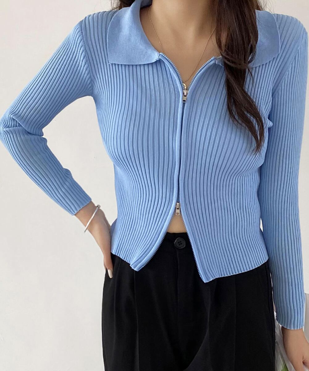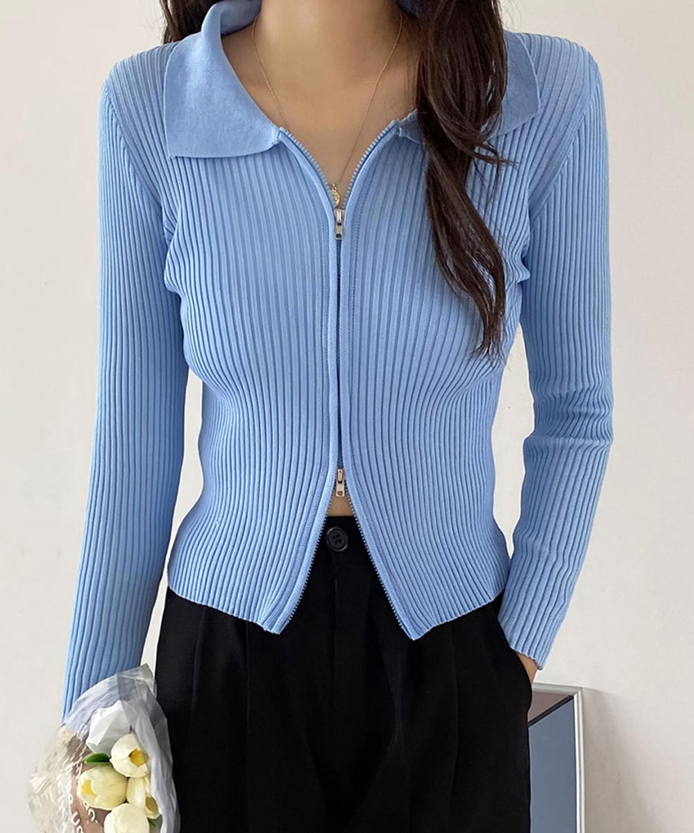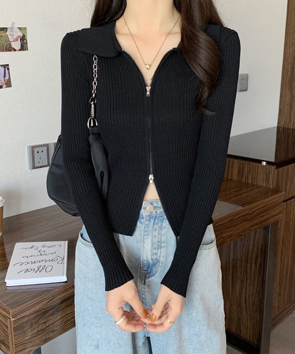 【日本倉庫からの発送】 リブニットトップスレディースジップアップ #[86XANYT-063_14300]【送料込み】【260115】