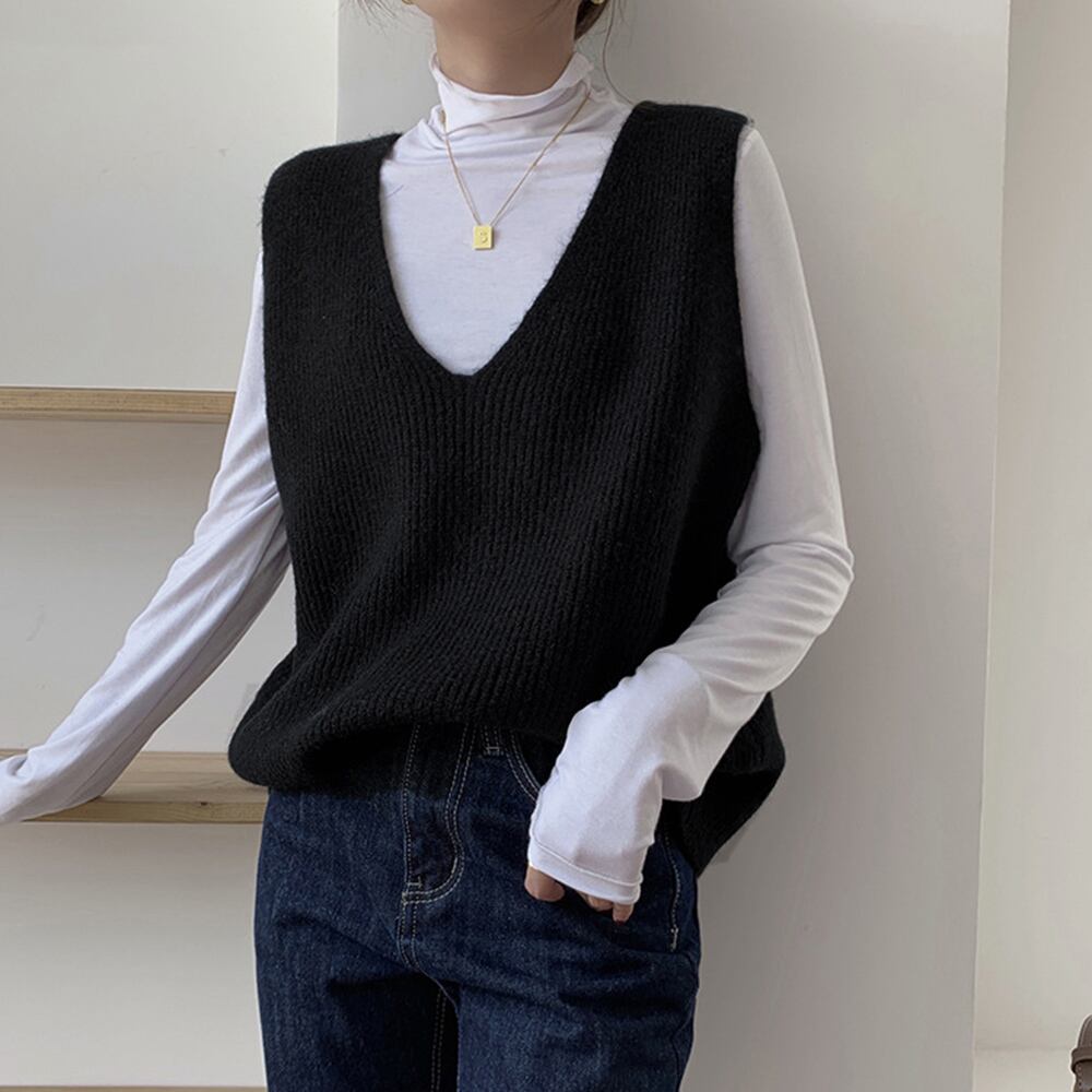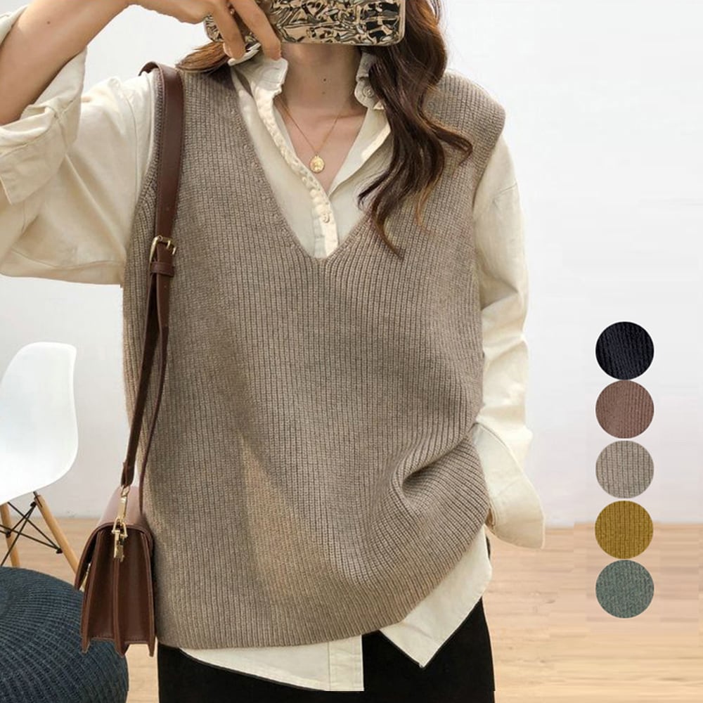 【日本倉庫からの発送】 リブニットベスト レディース vネック #[83XXGY-001_19700]【送料込み】【260115】