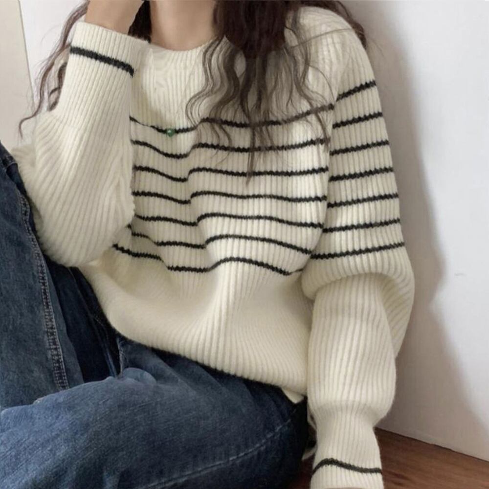 【日本倉庫からの発送】 ボーダー柄ニットプルオーバー レディース #[2NVRJ-007_23800]【送料込み】【250803】