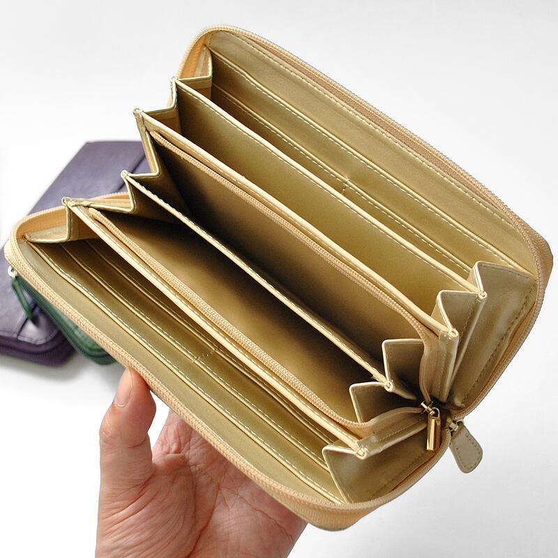 通帳やパスポートも収納可能な大容量デザインで中仕切りや