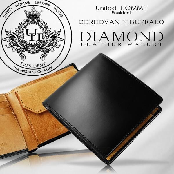 【unitedHOMME】高級馬革×水牛革短財布■UHP-112K■2色展開■コードバン×バッファロー折財布 #[uhp-112k_38000]【送料込み】【251103】