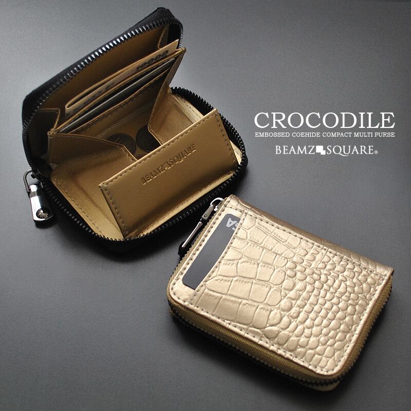 【BEAMZSQUARE】クロコ型押し牛革コインケース BS-3158 2色展開/売れ筋の金運アップカラー #[bs-3158_35500]【送料込み】【251103】