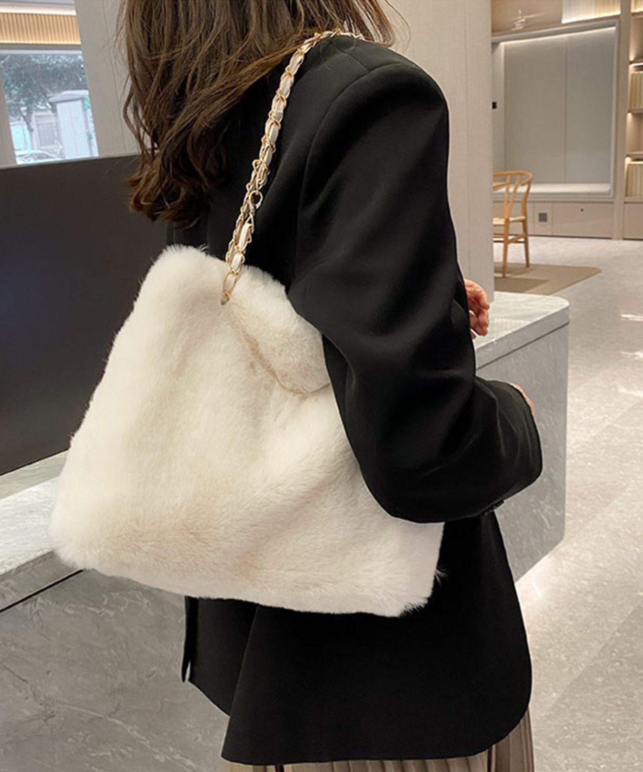 ふんわりとしたフェイクファーで仕上げたもこもこ手触りのチェーンショルダーバッグ