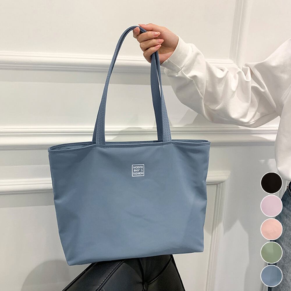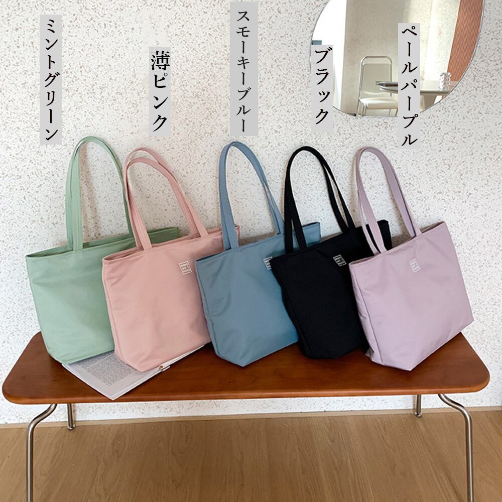 ハンドバッグ ロゴ入り A4対応 肩掛けバッグ 軽量 無地 手提げカバン 韓国風 ファスナー付き マザーズバッグ 大きめ