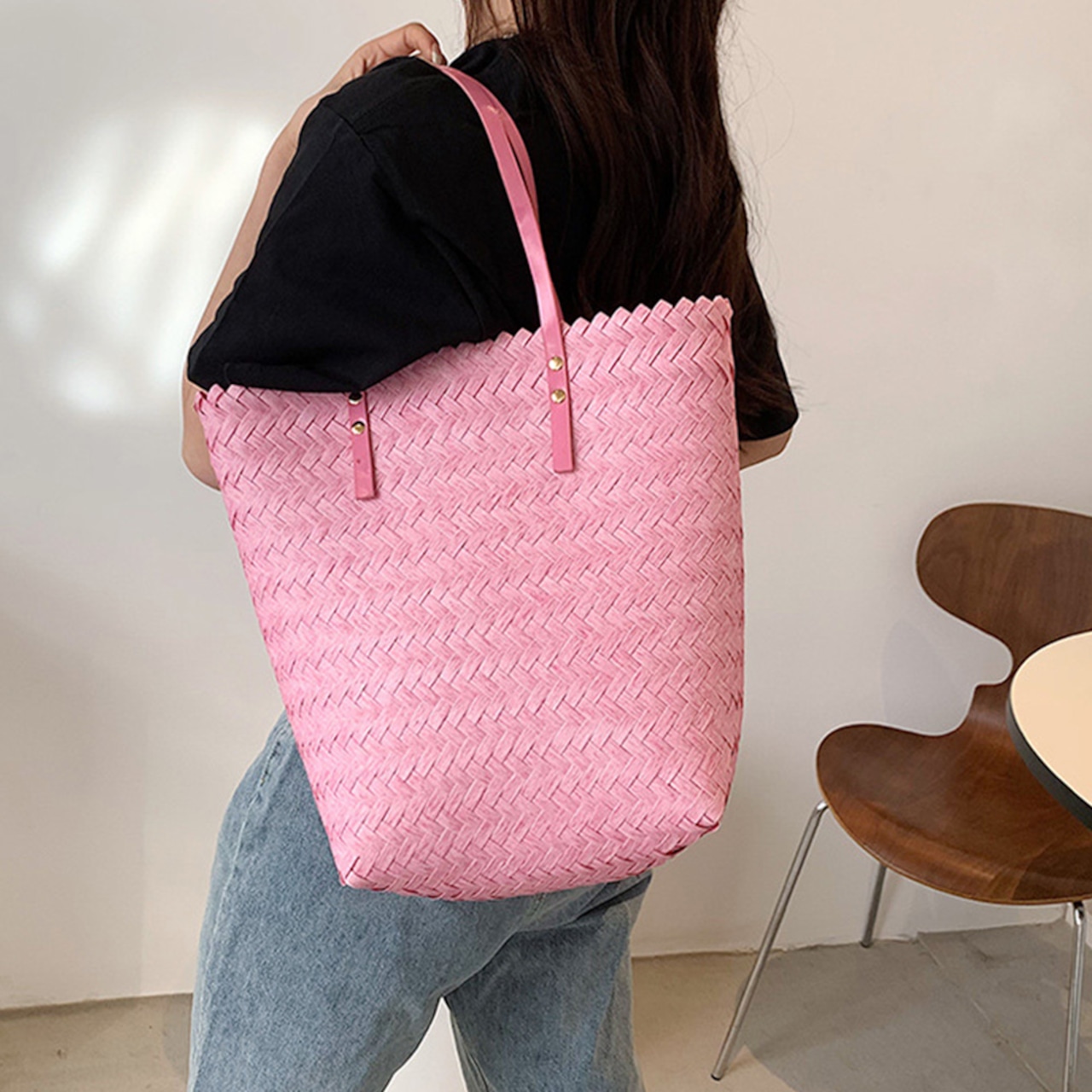 大人かわいい ストローバッグ レジャー シンプル 麦わらバッグ A4 バスケットバッグ 軽量 肩掛けかばん リゾート夏鞄