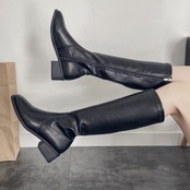 【日本倉庫からの発送】 ニーハイブーツ レディース ロング丈 スクエアトゥ ローヒール 合皮 レザー調 #[99GYXC-005_36300]【送料込み】【251012】
