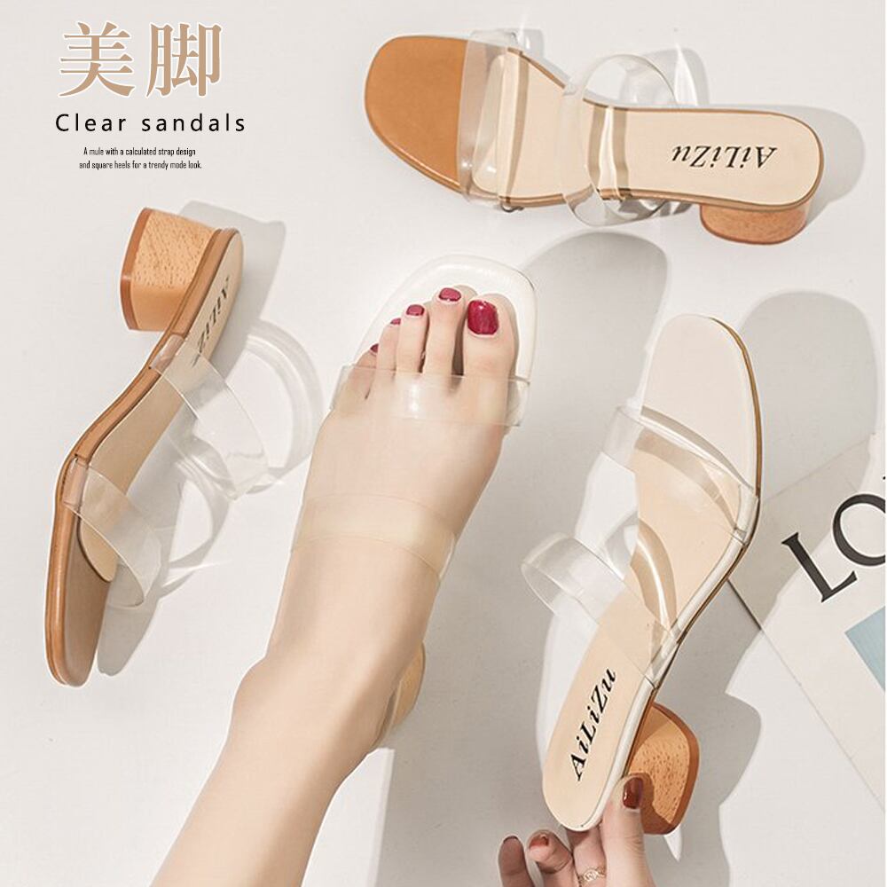 チャンキーヒール サンダル スクエアトゥ サマーサンダル 履きやすい ミュール 美脚サンダル 韓国風 スリッパサンダル