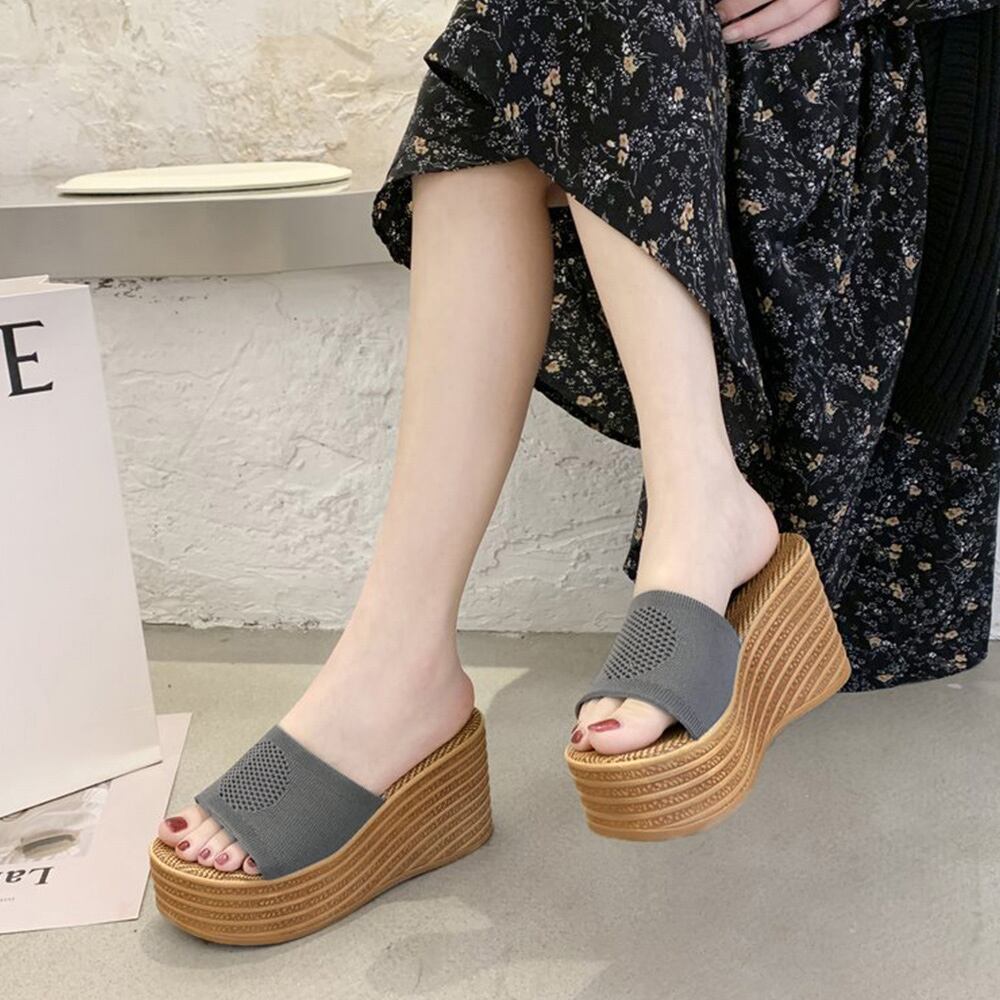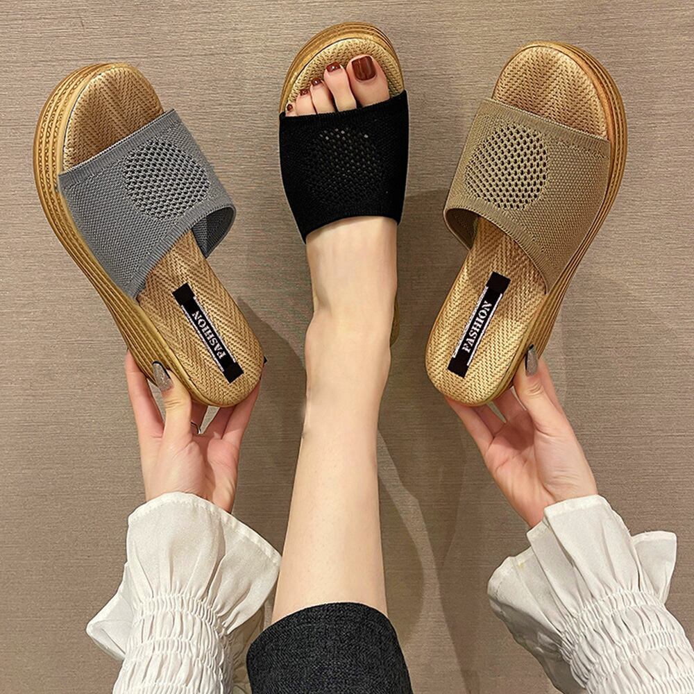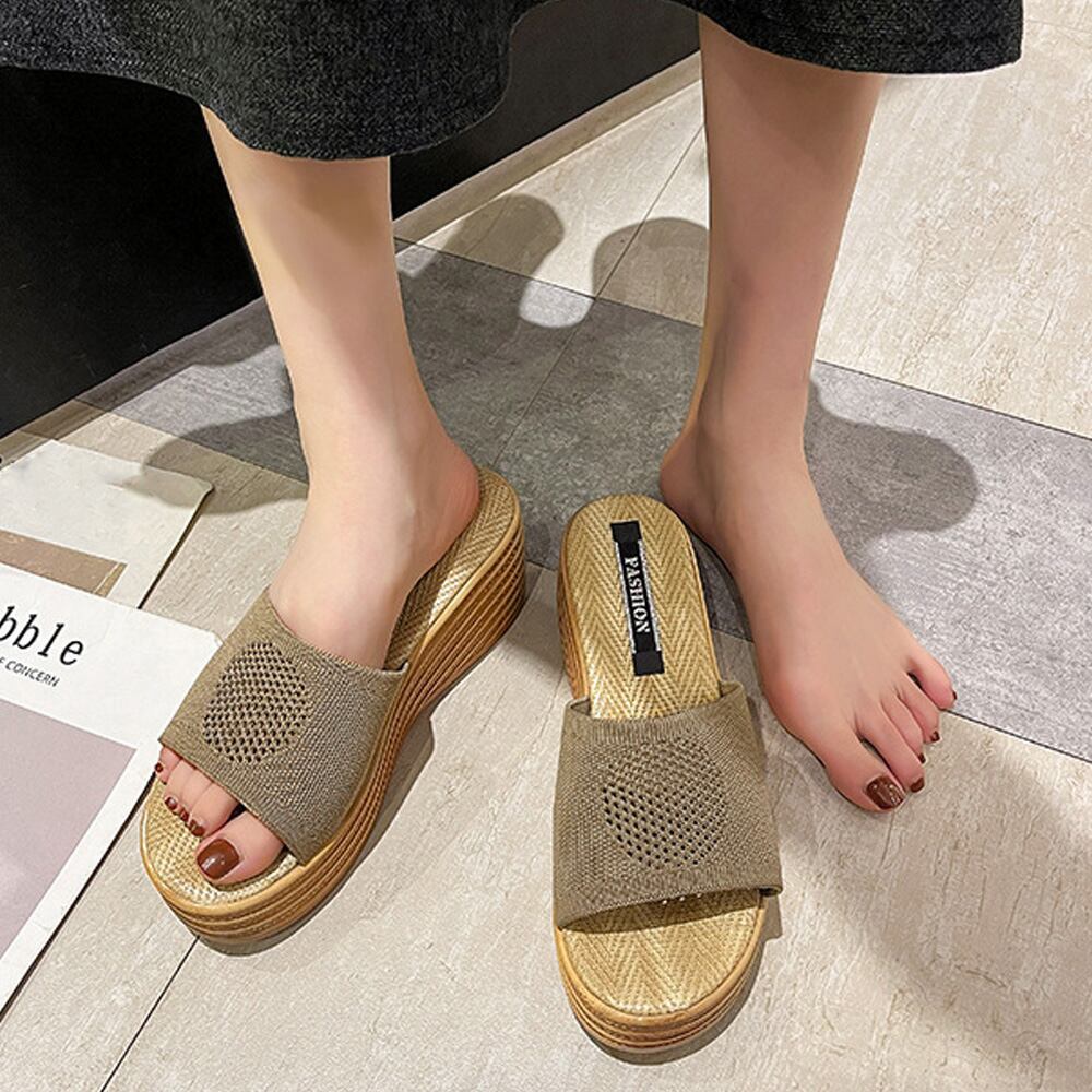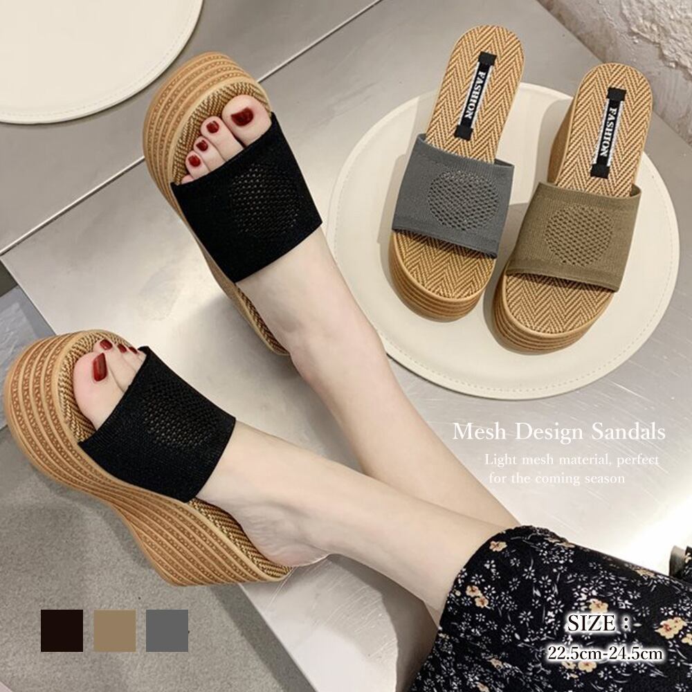 おしゃれ ジュート風 ウエッジソール サンダル 歩きやすい ボリュームソール スリッパ メッシュ 美脚カジュアルシューズ