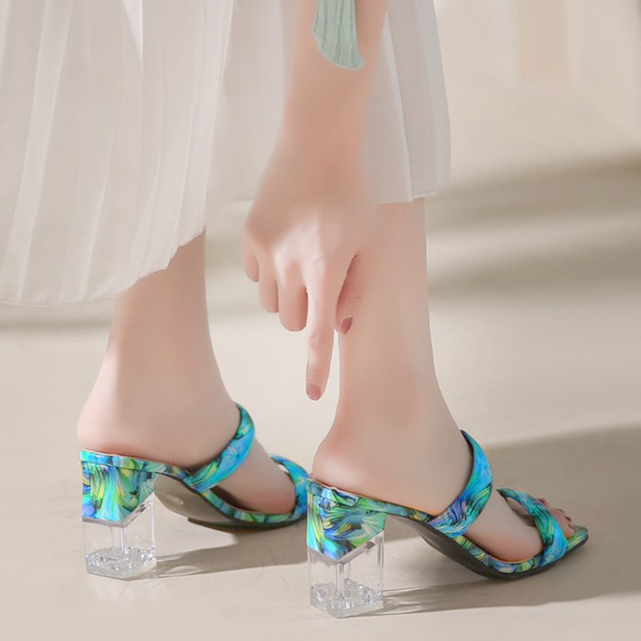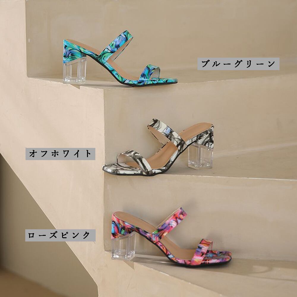 【日本倉庫からの発送】 クリアヒールサンダル ダブルベルト 花柄 #[3JIANLONG-046_25200]【送料込み】【250727】