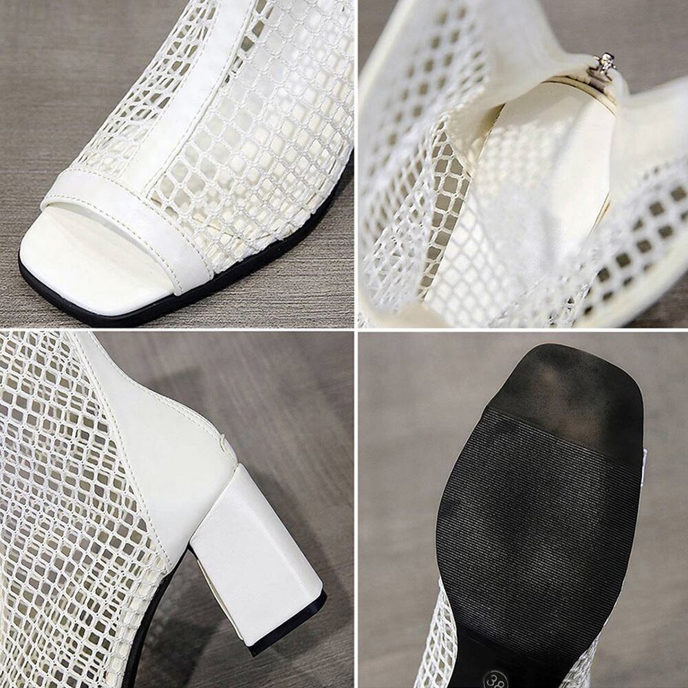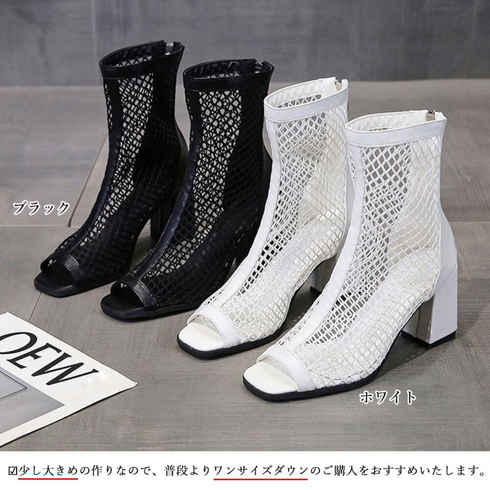 オープントゥ サマーブーツ レディース バックジッパー ハイヒール夏ブーツ 歩きやすい 通気性 美脚脚長 おしゃれ 夏靴