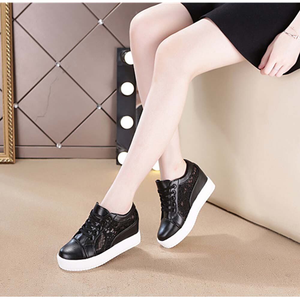 インヒールスニーカー レディース レースシースルー切り替え シューズ 厚底 靴 痛くない