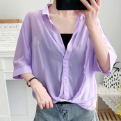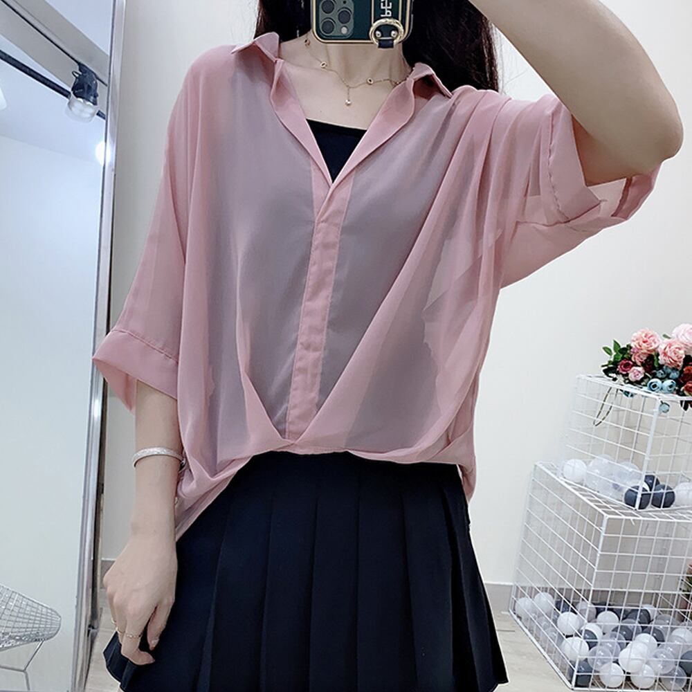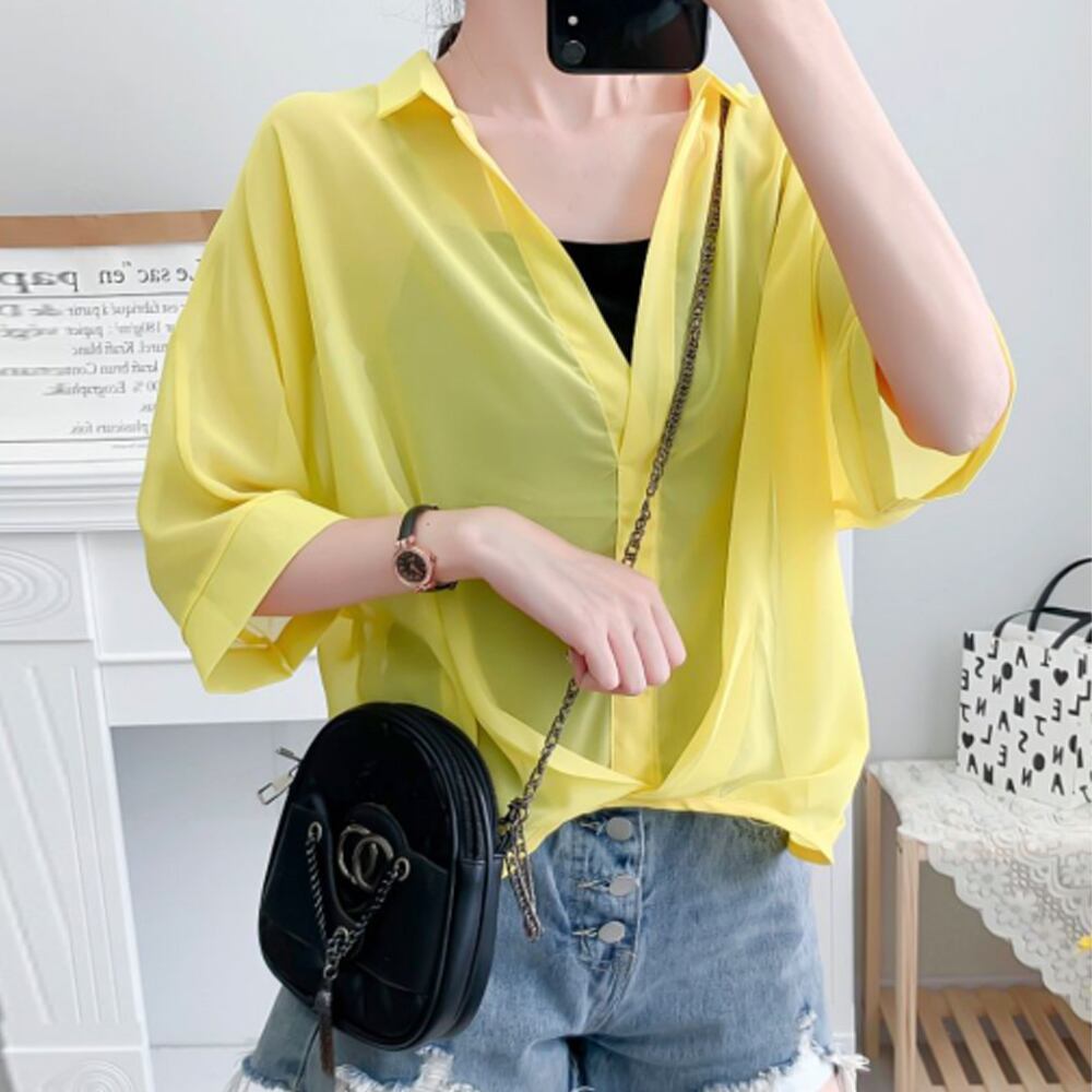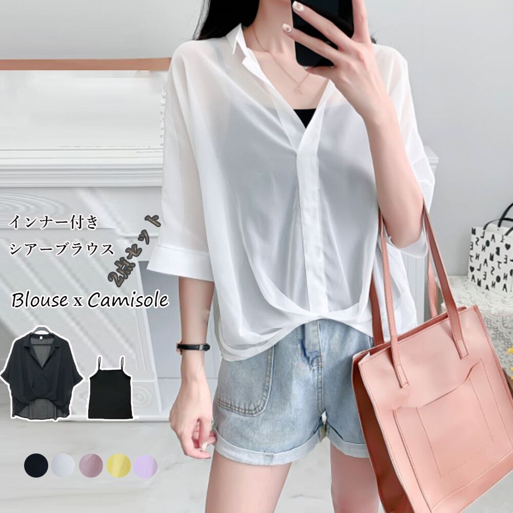 スキッパーブラウスシャツ キャミソー付き セットアップ 透け感 大人 シースルー トップス きれいめ