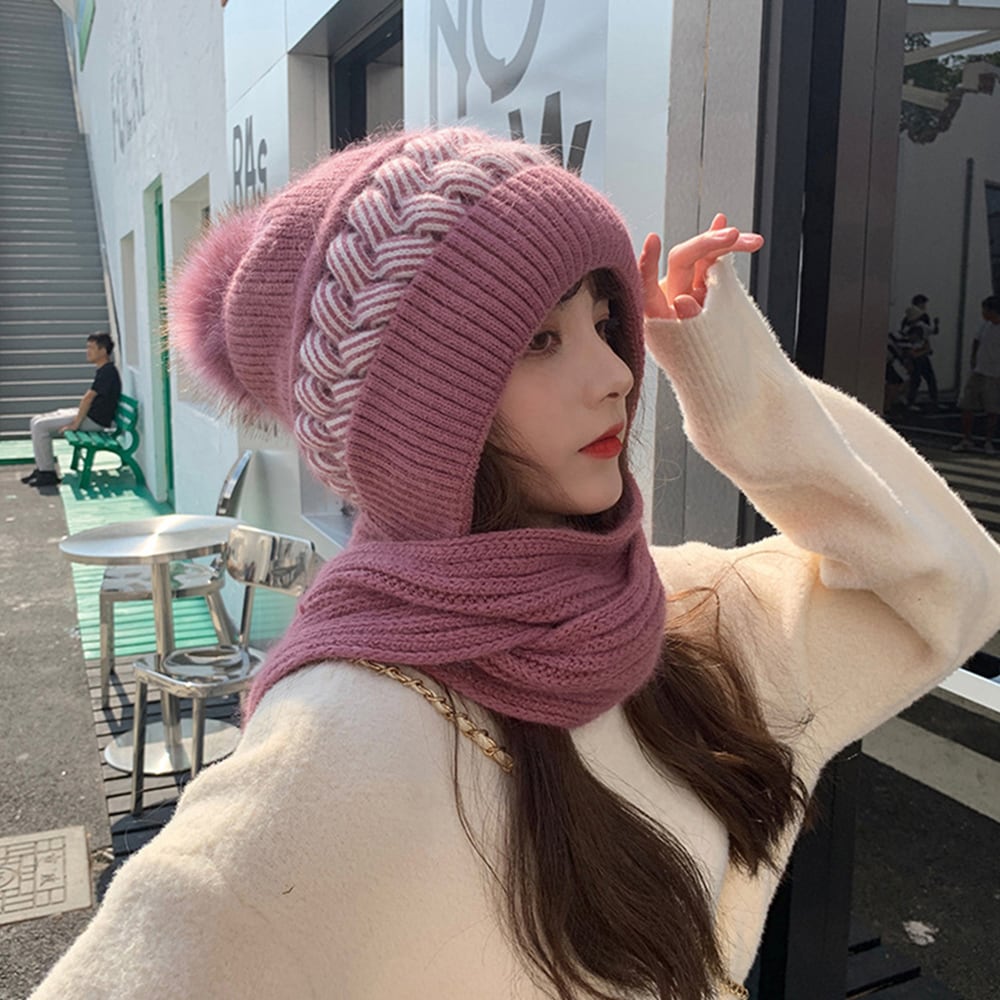 ニット帽子 ニットマフラー 一体型 フード付マフラー秋冬ストール スノーボード スキー 防寒帽子レディース あったか保温