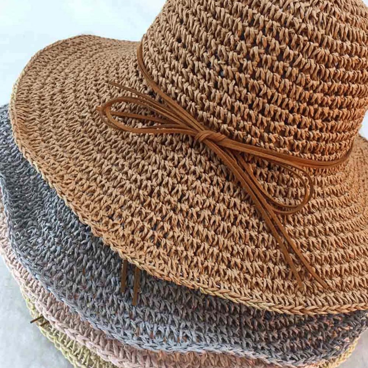 麦わら帽子 レディース 折たたみ つば広 ハット uv防止 おしゃれ 細リボン 帽子