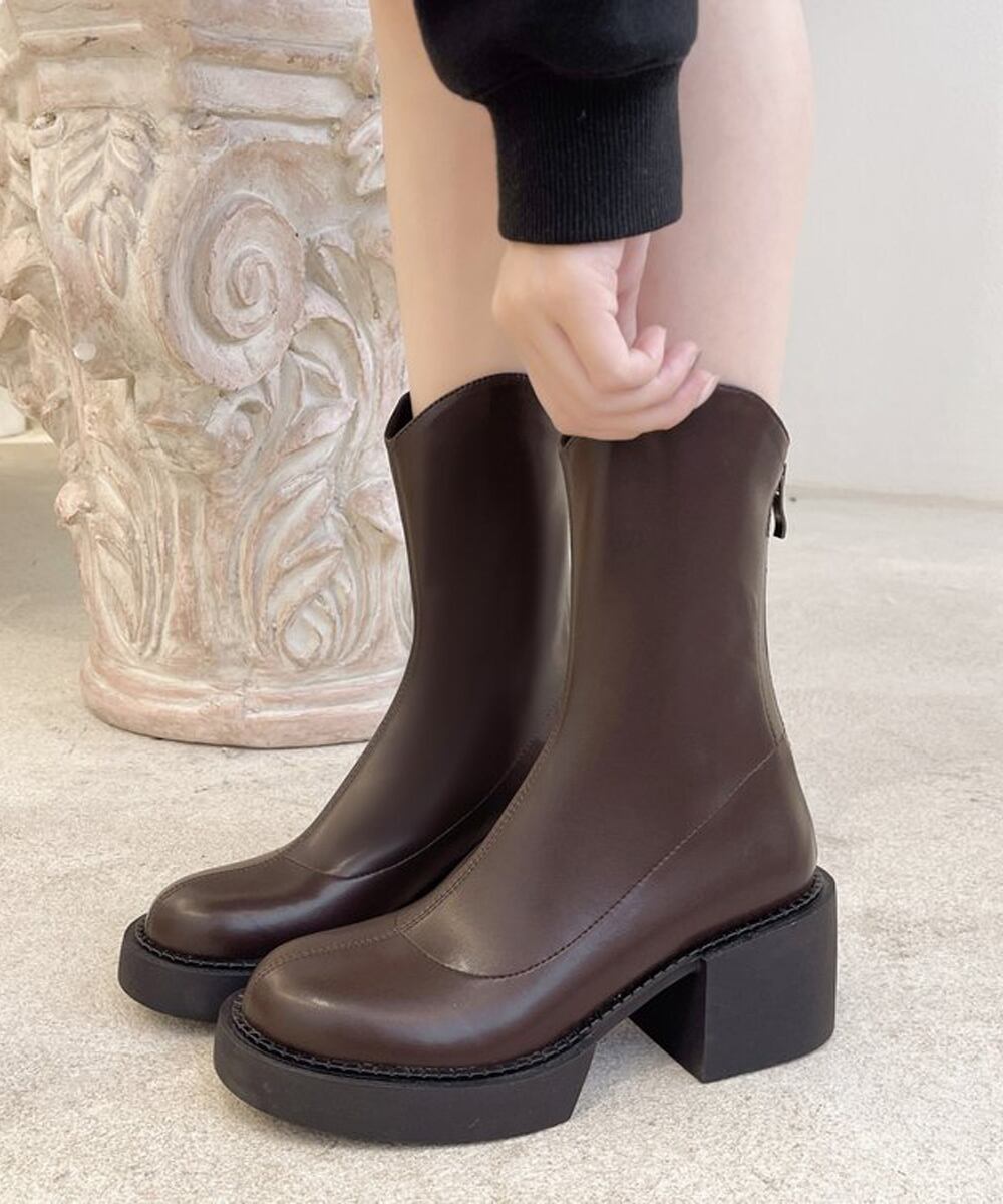 チャンキーヒール ミドルブーツ ラウンドトゥ カジュアル靴 秋冬 バックジップブーツ 履きやすい 疲れにくいくつ人気新作