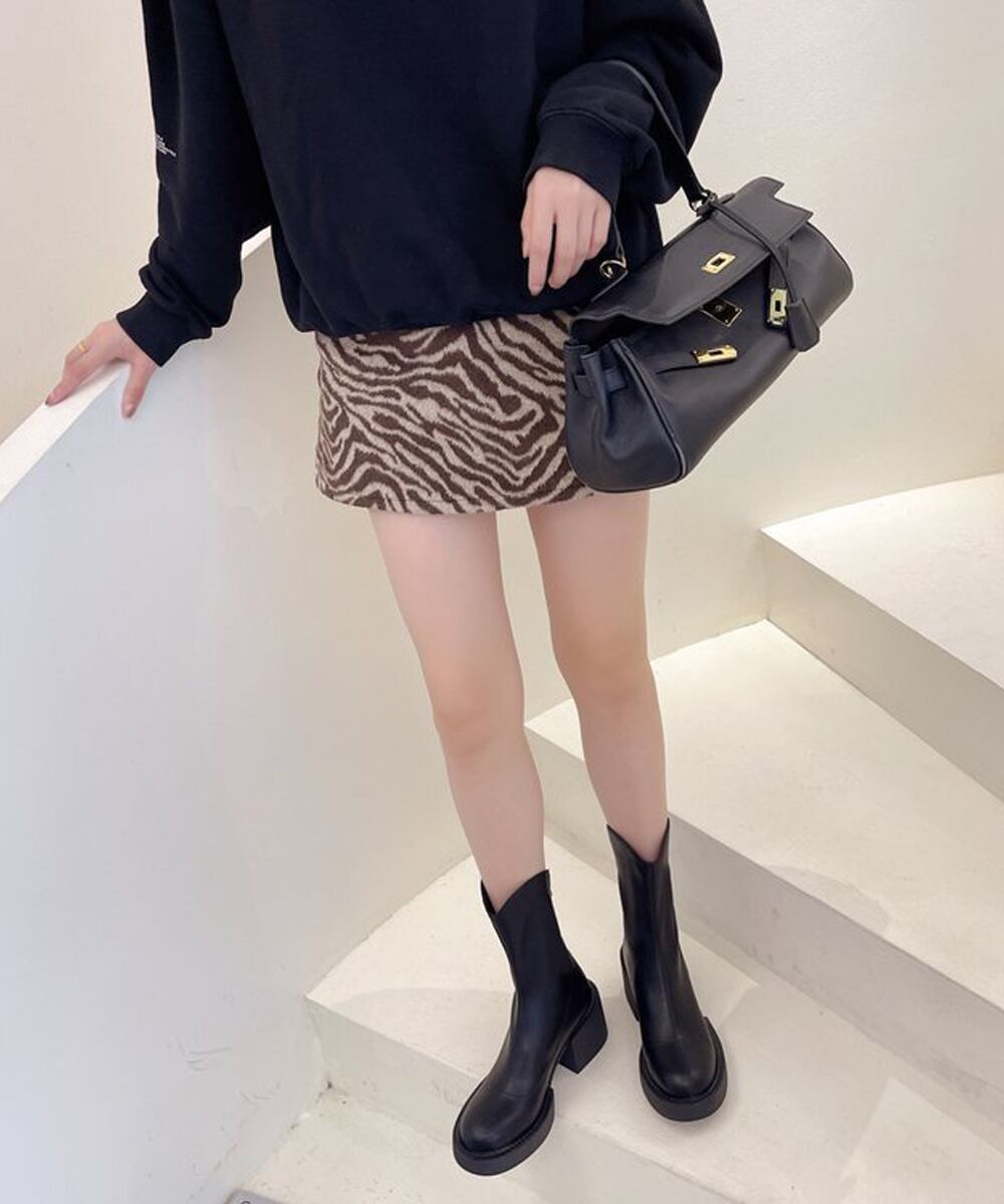 韓国ファッション秋 黒ブーツ おしゃれ 歩きやすい太ヒール