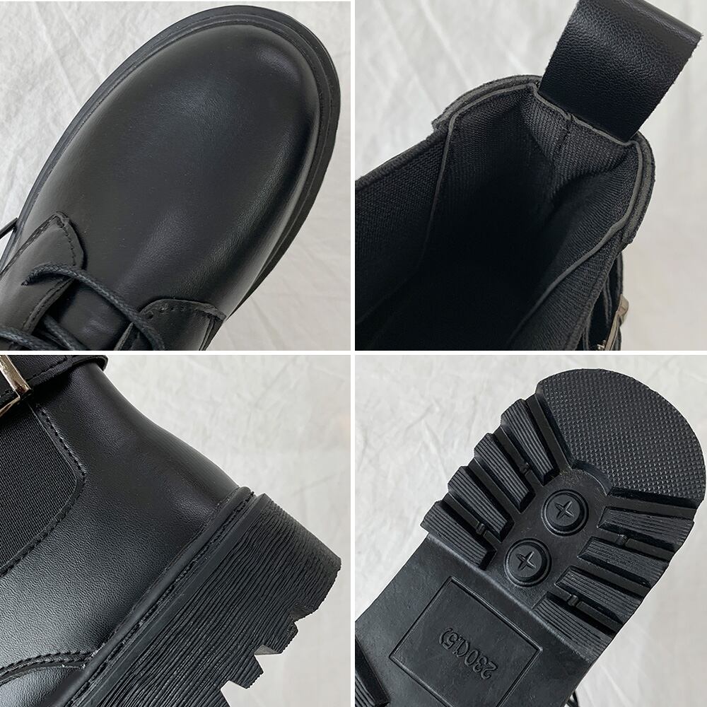 レースアップ ローヒールシューズ 大人カジュアル サイドコアブーツ ベルト付き シューズ ストリートブーティ 疲れない
