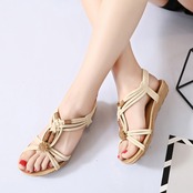 柔らかい素材のクロスデザイン&アンクルストラップのエスニック風サンダル