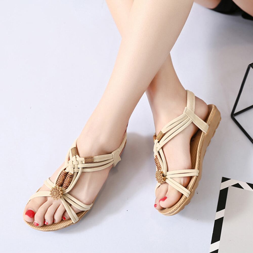 レディース コンフォートサンダル 歩きやすい ぺたんこ ボヘミアン風 靴 ビーチサンダル南国風 疲れにくい