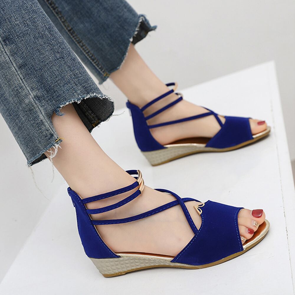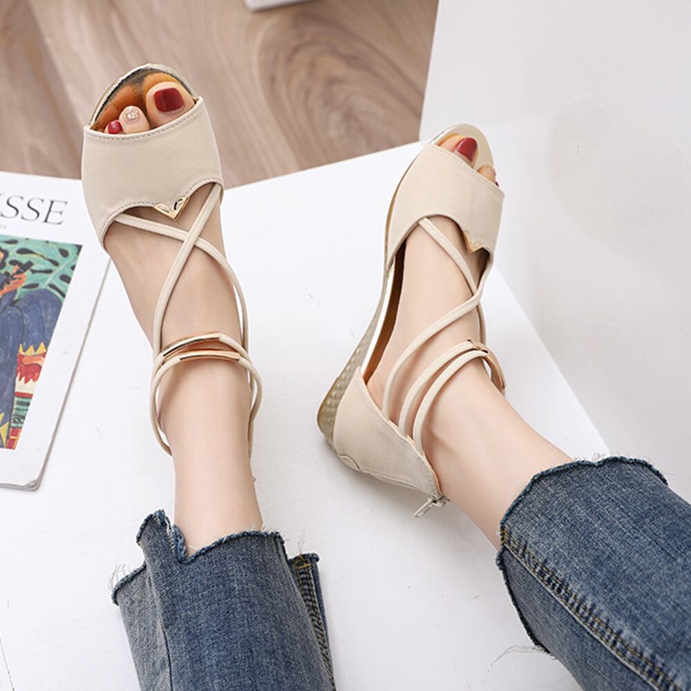 ウェッジソール ストラップサンダル 美脚 バックファスナー ローヒール グラディエーターウェッジサンダル 履きやすい人気