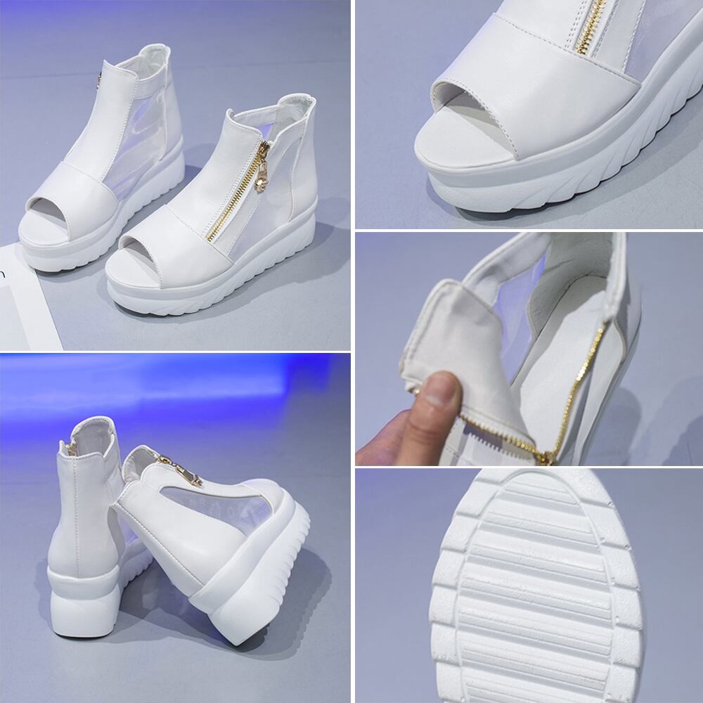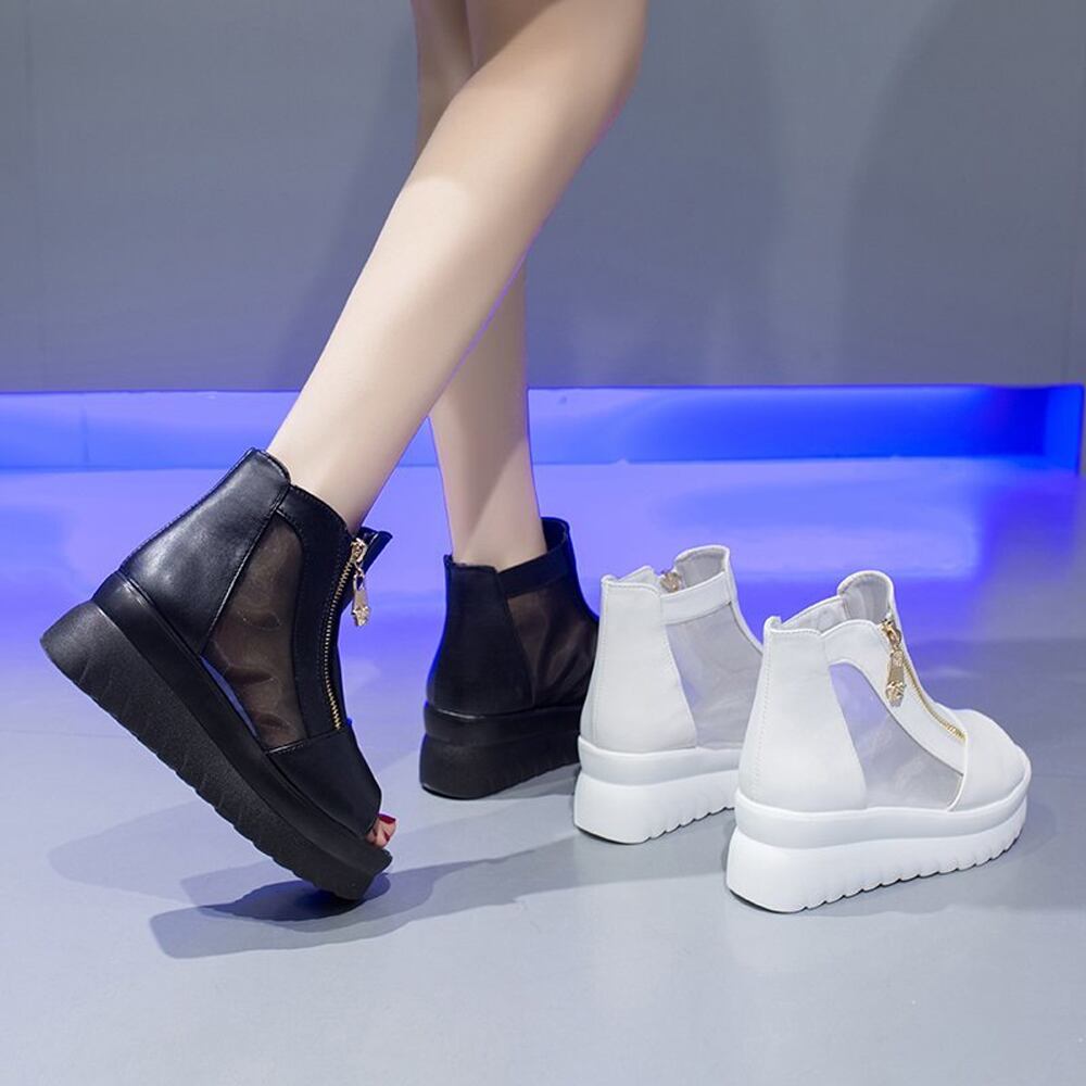 サマーブーツ 黒白 蒸れないサンダル夏 疲れにくい 厚底靴