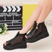 厚底だからさり気なく脚長効果を狙えるオープントゥブーツサンダル
