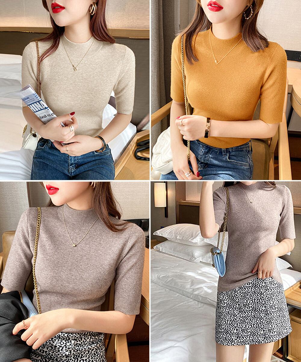 【日本倉庫からの発送】 モックネック ニットトップス 五分袖韓国 #[87XUNYOU-001_11500]【送料込み】【250607】