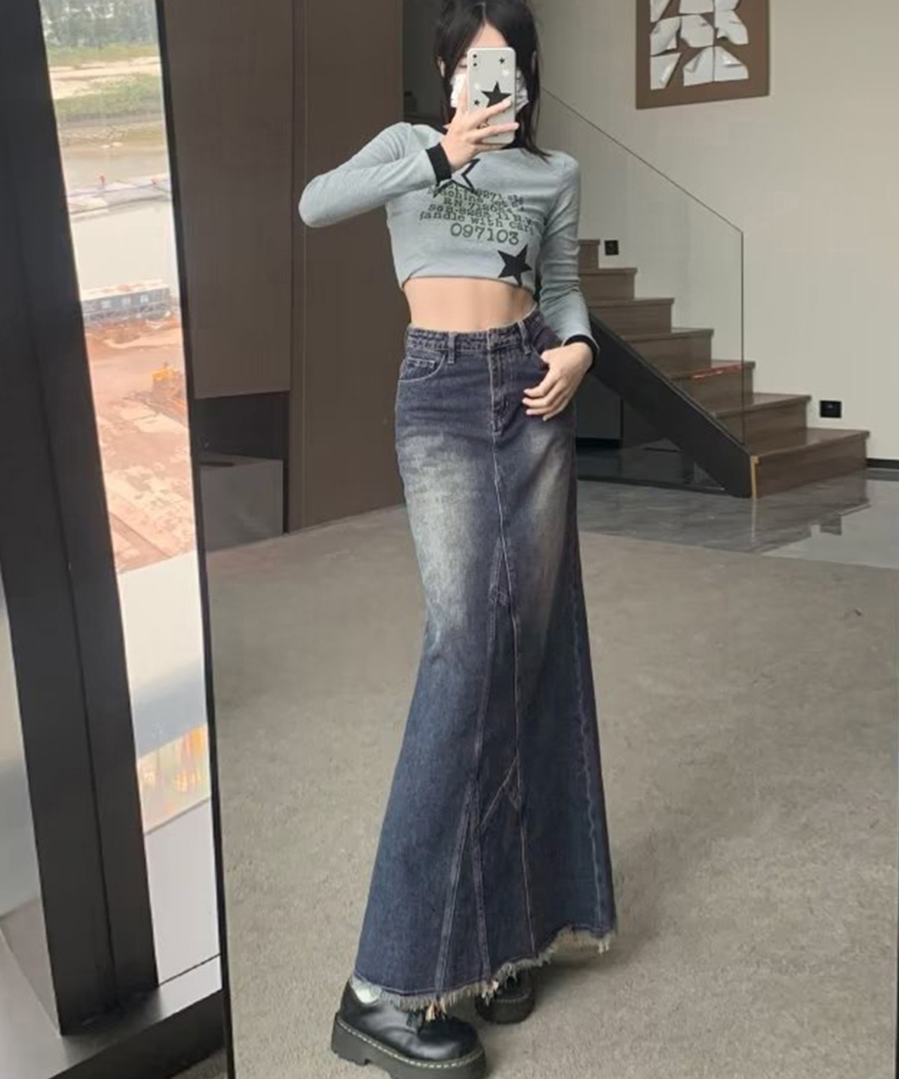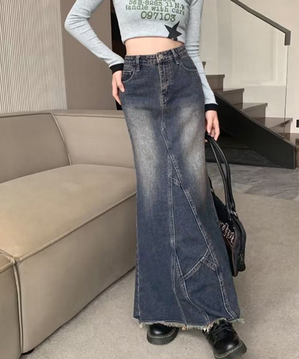 【日本倉庫からの発送】 デニムロングスカート バックスリット韓国 #[80RUIQ-001_25200]【送料込み】【251210】