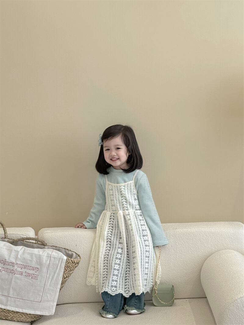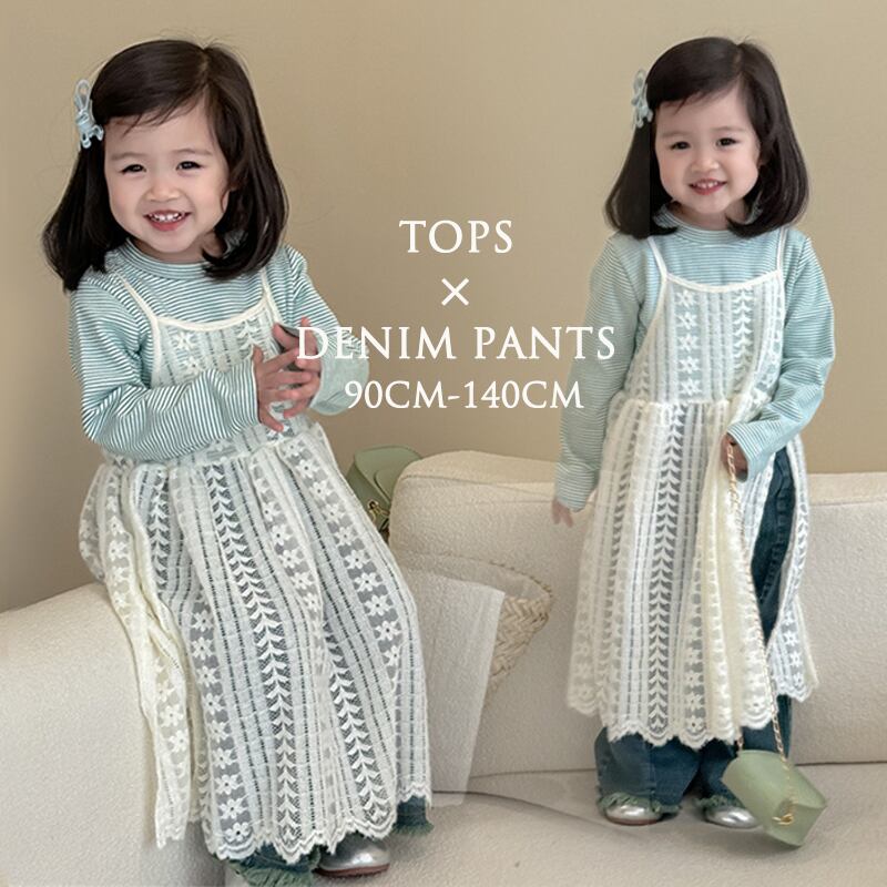 【海外からの取り寄せ】2024新作 韓国子供服 子供 キッズ トップス ストライプ柄 長袖 ジーンズ デニム ボトムス パンツ 可愛い #[kids716_19800]【送料込み】【250706】