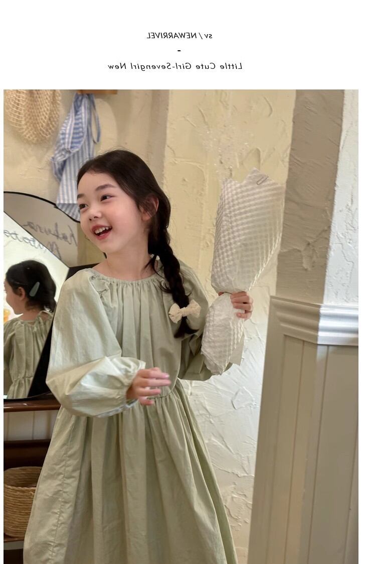 【海外からの取り寄せ】2024新作 韓国子供服 子供 キッズ 女の子 ワンピース 長袖 ライトグリーン ゆったり 可愛い ロングワンピ #[kids708_12800]【送料込み】【250706】