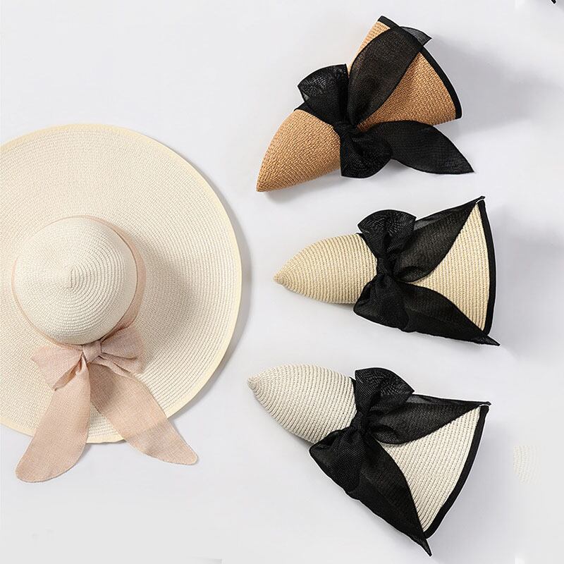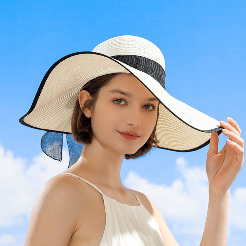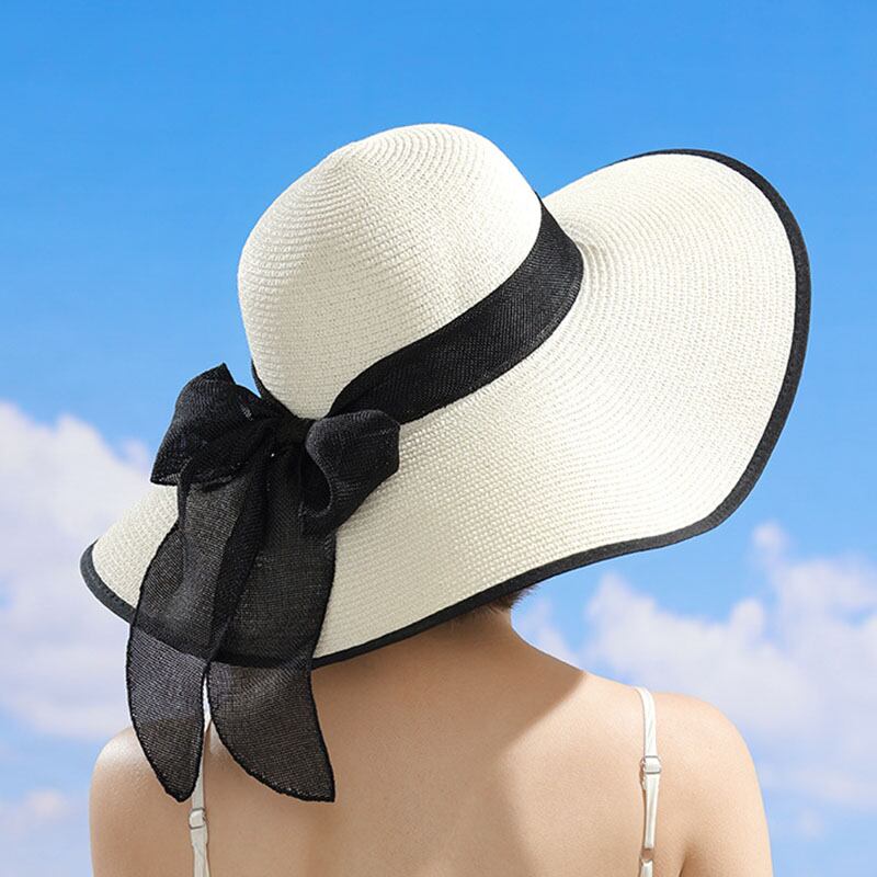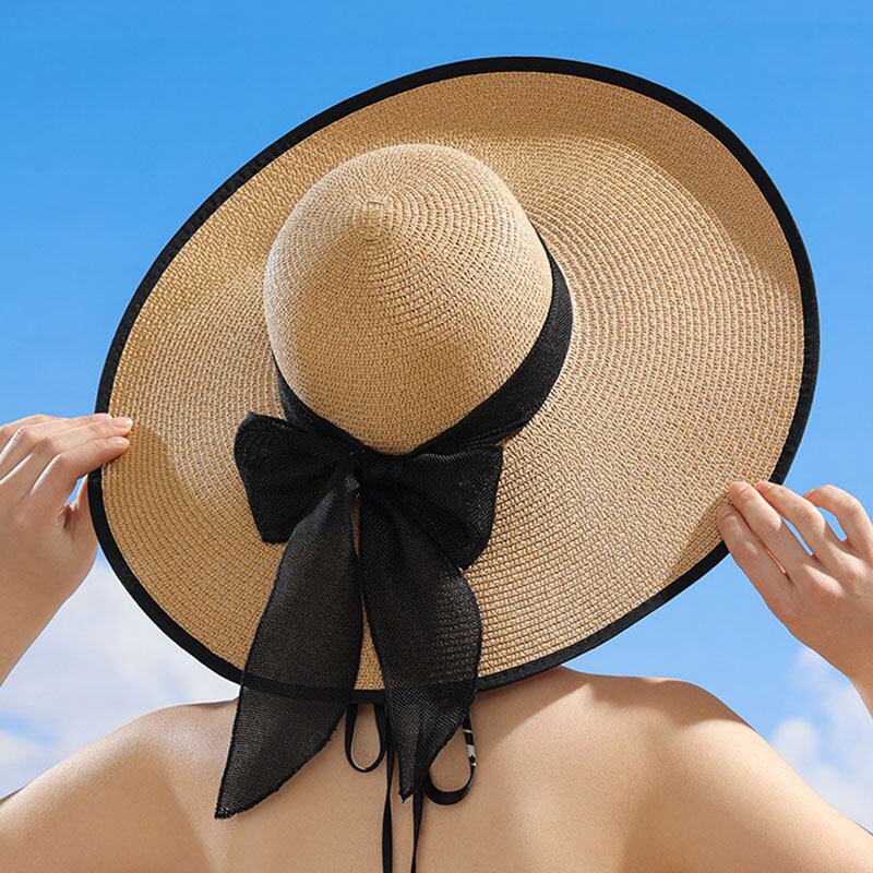 【海外からの取り寄せ】ハット 遮光 リボン 紫外線対策 サイズ調節 女優帽 つば広 黒 UPF50+ エレガント 麦わら風帽子 #[hat314_11800]【送料込み】【250618】