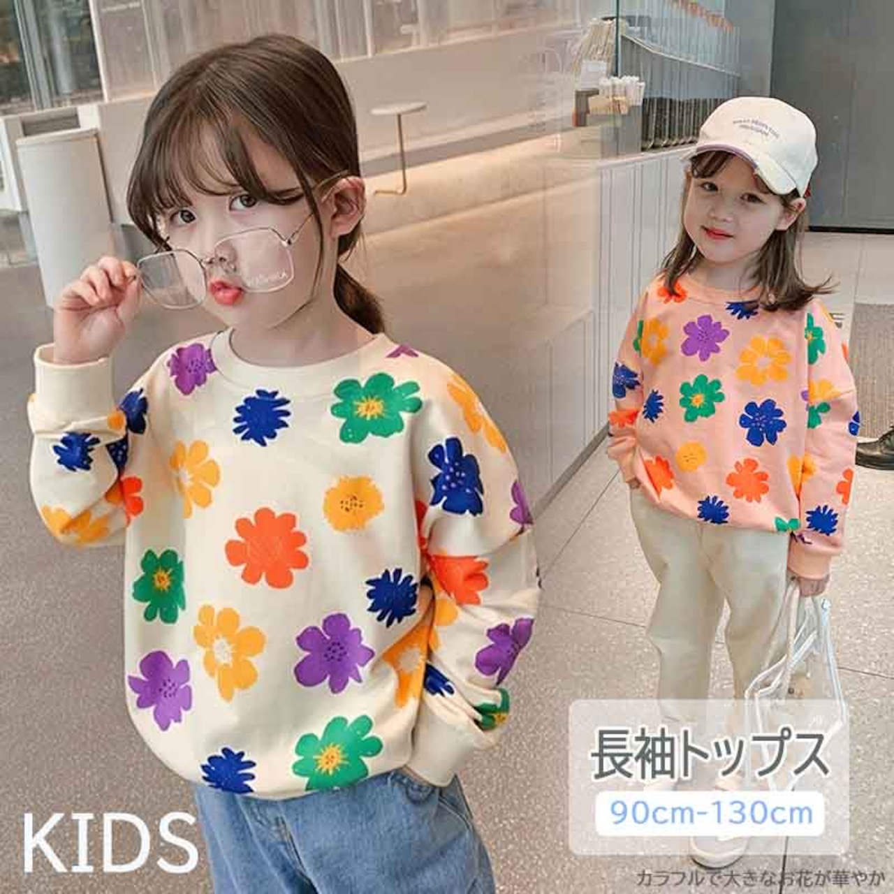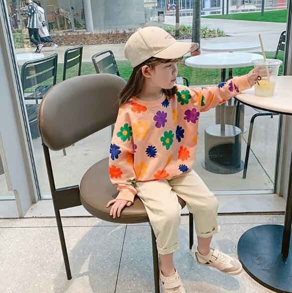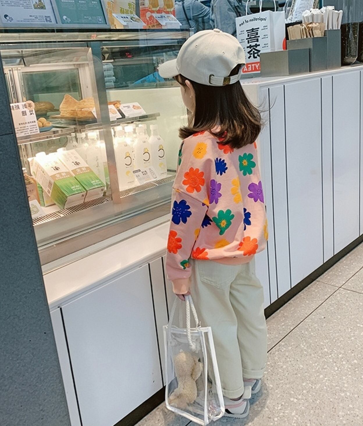 【海外からの取り寄せ】2023春新作 韓国子供服 子供 キッズ 長袖 トップス トレーナー プルオーバー フラワー 花柄 ピンク #[kids520_13800]【送料込み】【250706】