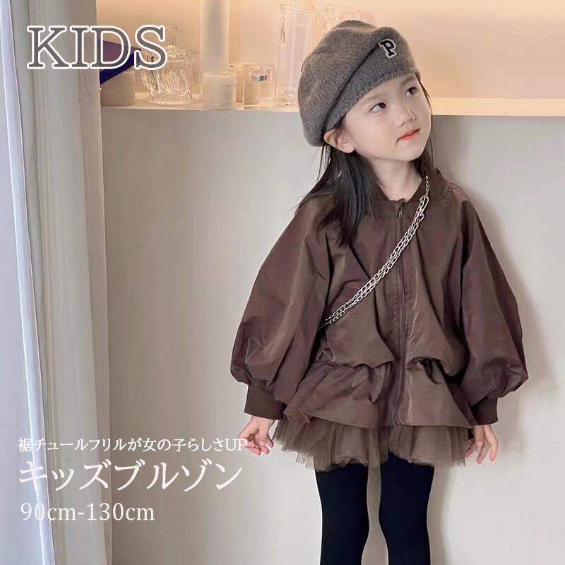 裾チュールフリルが女の子らしさUP キッズブルゾン