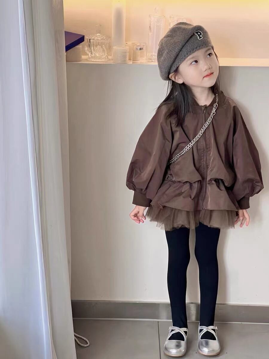 【海外からの取り寄せ】2023秋冬新作 韓国風 子供服 女の子 可愛い キッズ コート パーカー 裾フリル チュール 無地 ファスナー #[kids629_13800]【送料込み】【250923】