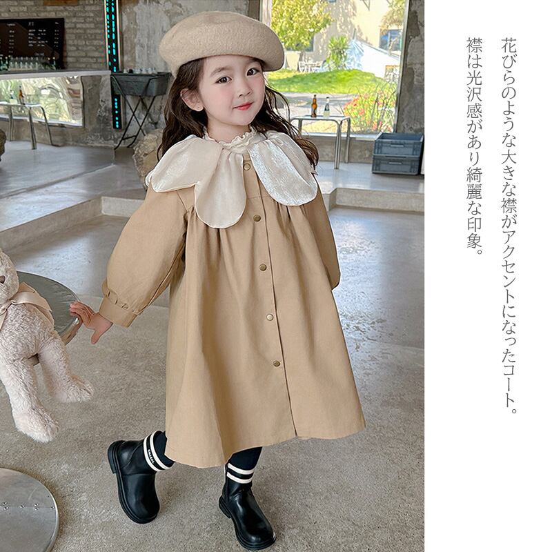 【海外からの取り寄せ】2023秋冬新作 韓国風 子供服 女の子 可愛い キッズ コート ボタン 大きい襟 花びら ベージュ アウター 120 #[kids627_19800]【送料込み】【250923】
