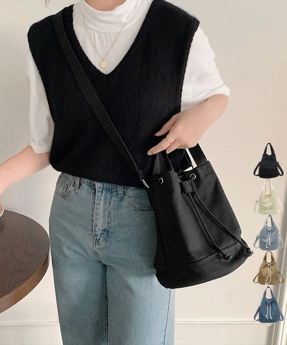 3wayバケツバッグ キャンバスバッグ 斜め掛けバッグ 使いやすいドローストリングバッグ 手提げバッグ 肩掛け鞄通勤通学