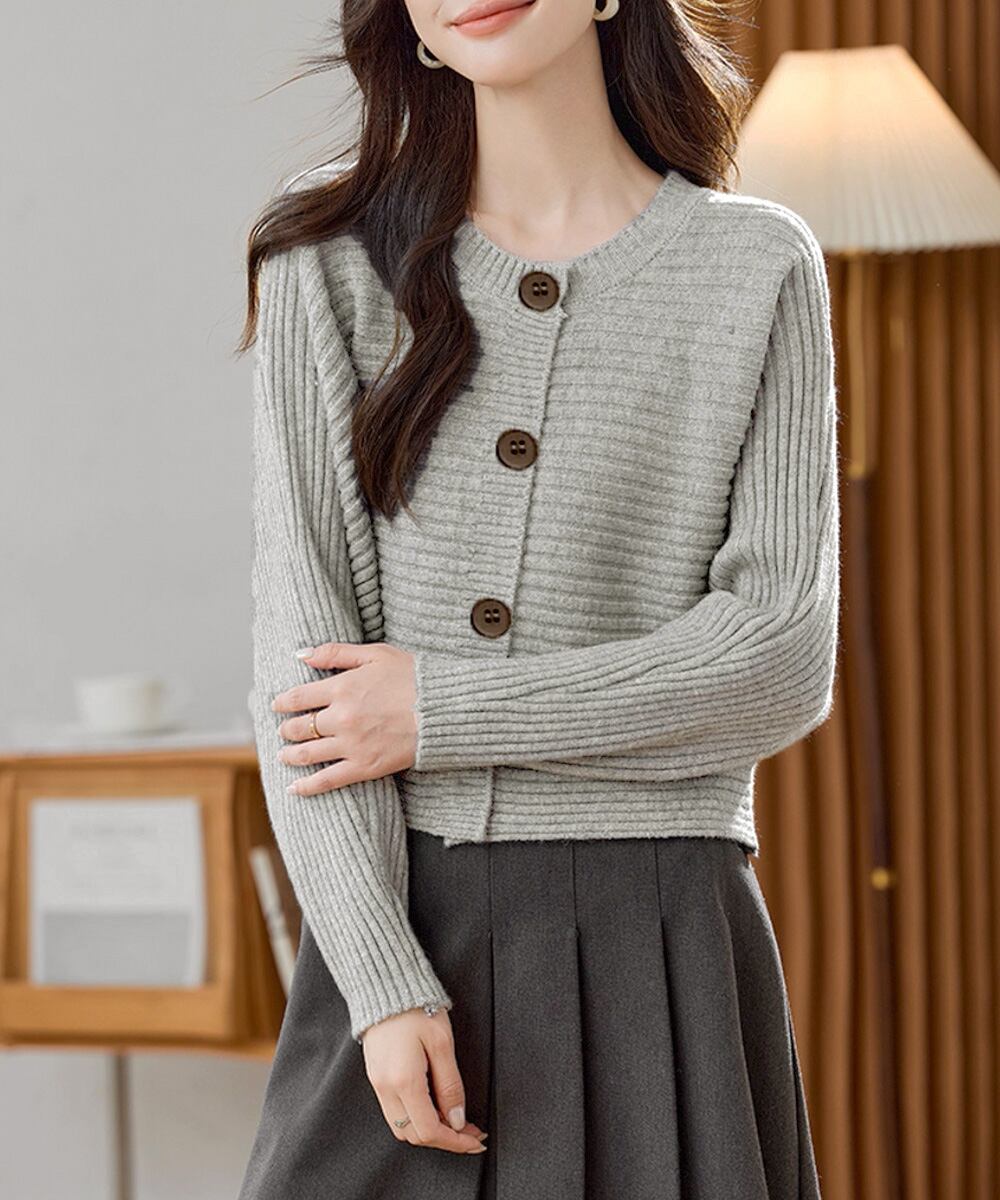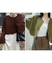 韓国長袖 きれいめ 前開き 大人可愛い 着やせボレロカーデ