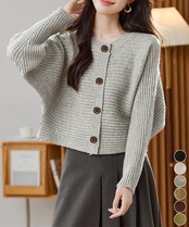 レディース ラウンドネック ニットショール ドルマンスリーブ ニットソー 着回し ニットカーディガン お洒落 春秋羽織り