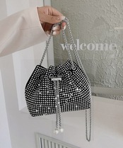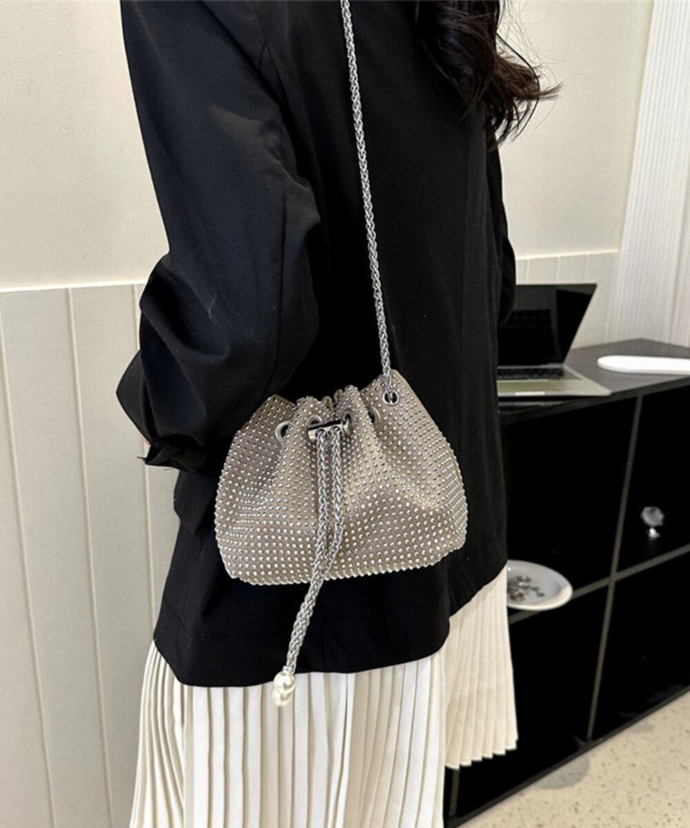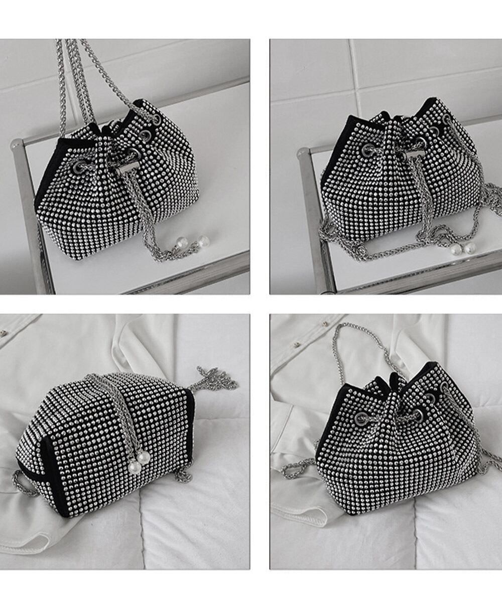 バケツバッグ レディース ラインストーン 斜め掛けバッグ コンパクト 肩掛けかばん 可愛い お呼ばれバッグ 結婚式二次会
