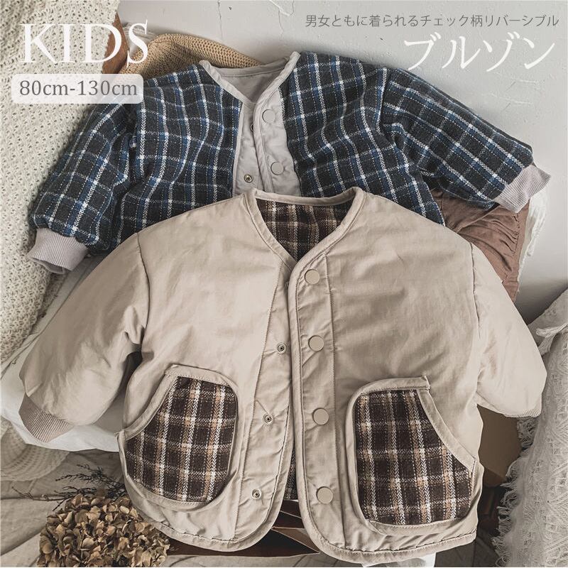 【海外からの取り寄せ】2023秋冬新作 韓国風 子供服 アウター コート ジャケット ブルゾン リバーシブル チェック柄 #[kids664_23800]【送料込み】【250923】