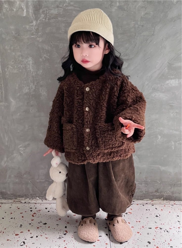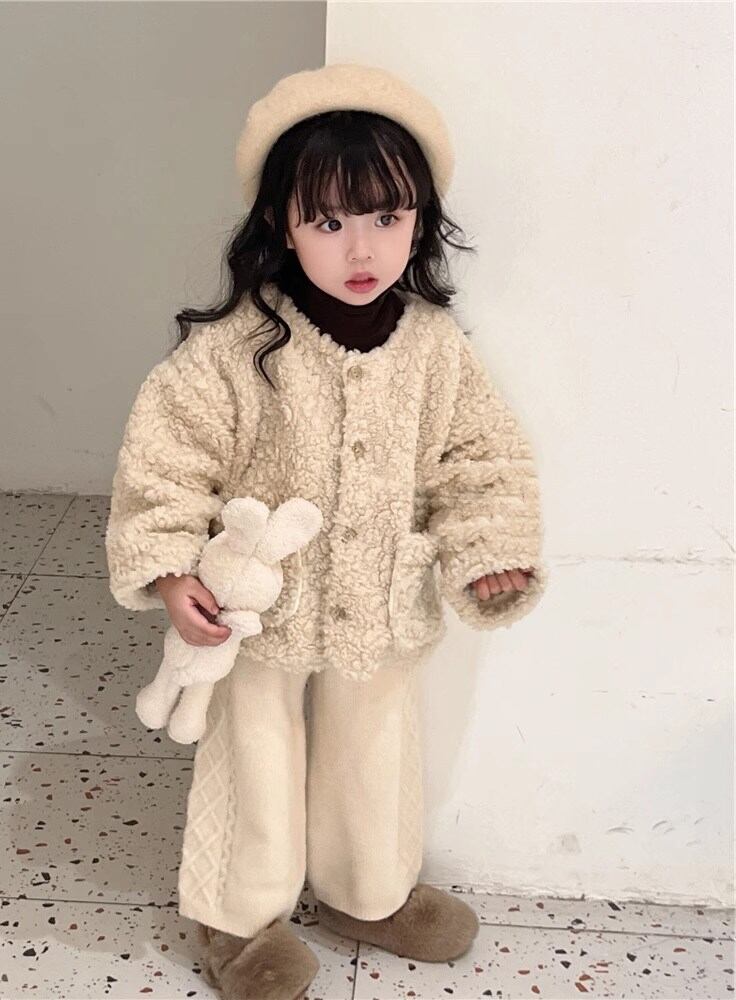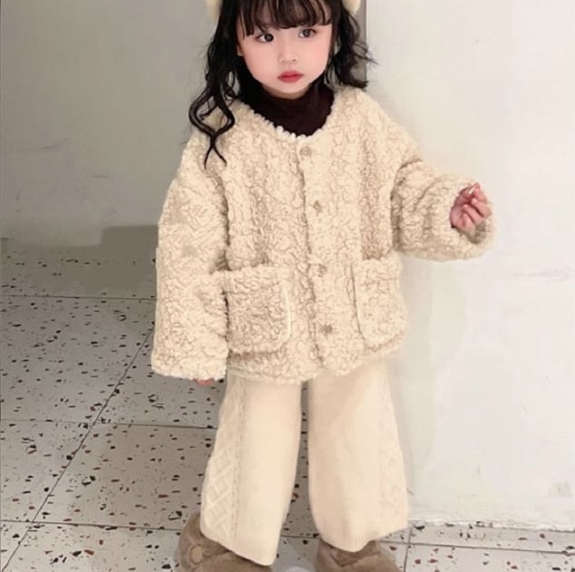 【海外からの取り寄せ】2023秋冬新作 韓国風 子供服 アウター コート もこもこ ボア ファー ノーカラー ジャケット ブルゾン #[kids658_19800]【送料込み】【250330】