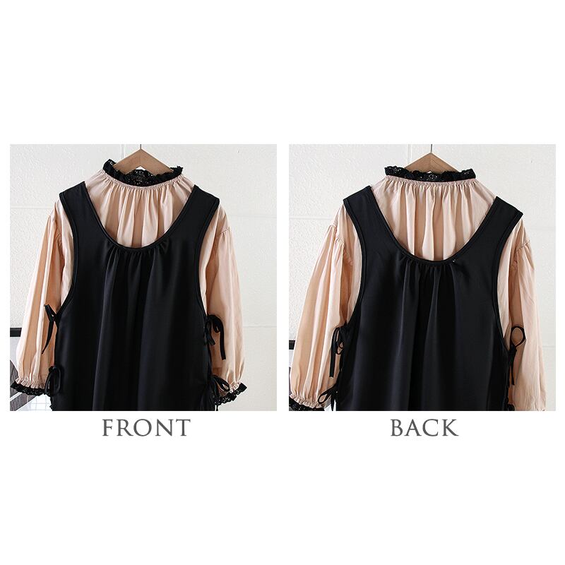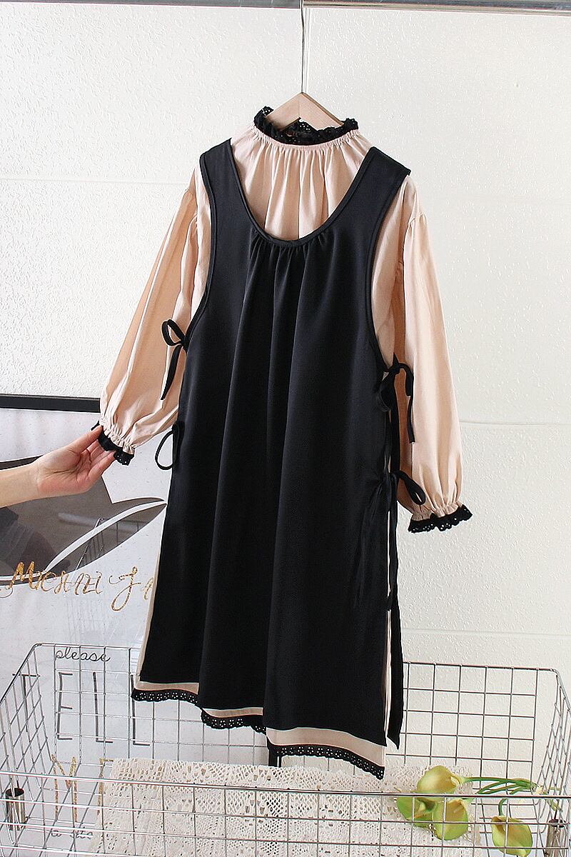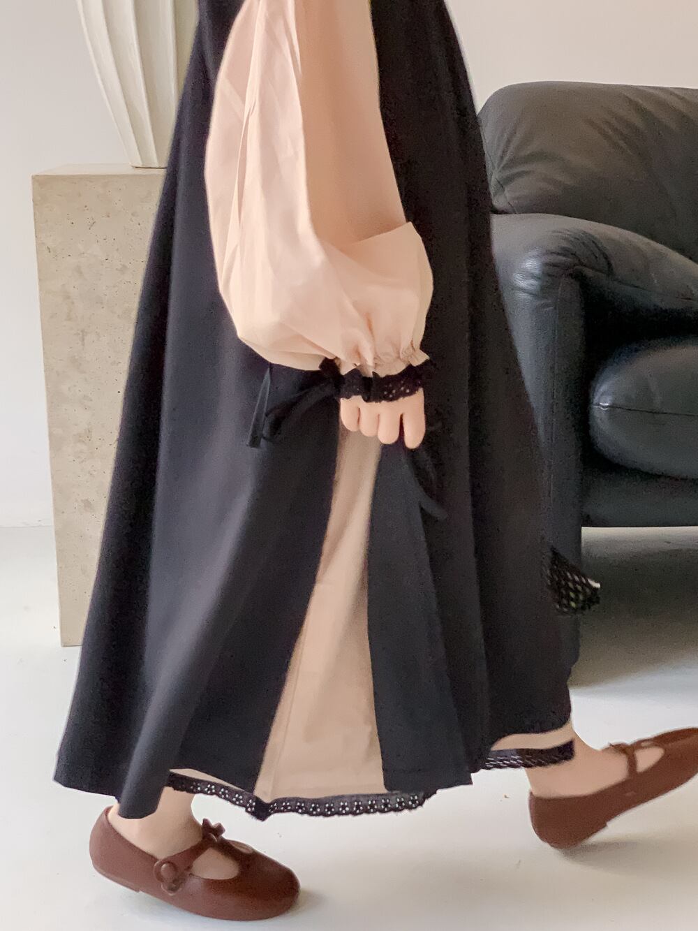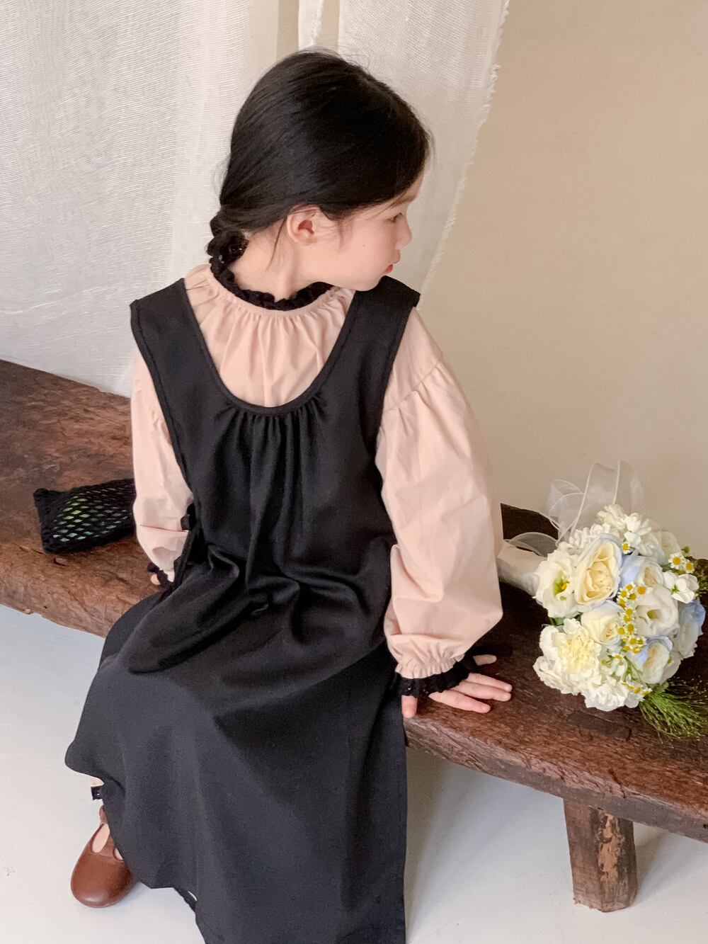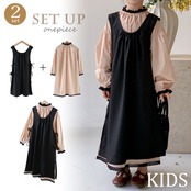 【海外からの取り寄せ】2024新作 韓国子供服 子供 キッズ ワンピース レイヤード セットアップ フリルネック 長袖2 点セット #[kids699_23800]【送料込み】【250706】