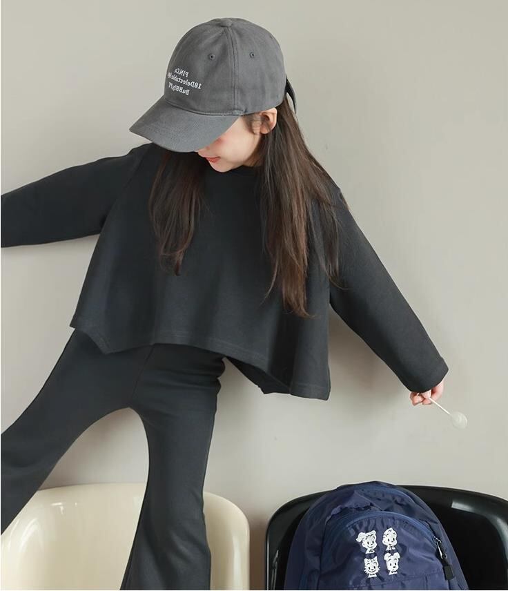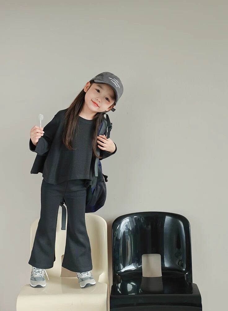 【海外からの取り寄せ】2024新作 韓国子供服 子供 キッズ 黒 2点セット 上下セット セットアップ 長袖 フレアパンツ 子ども服 #[kids690_14800]【送料込み】【250706】