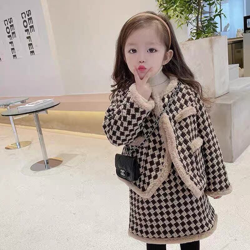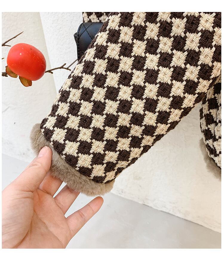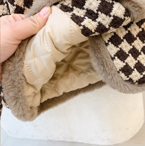 【海外からの取り寄せ】2023秋冬新作 韓国風 子供服 キッズ アウター コート ファー コート裏キルティング ジャケット チェック柄 #[kids682_24900]【送料込み】【250923】