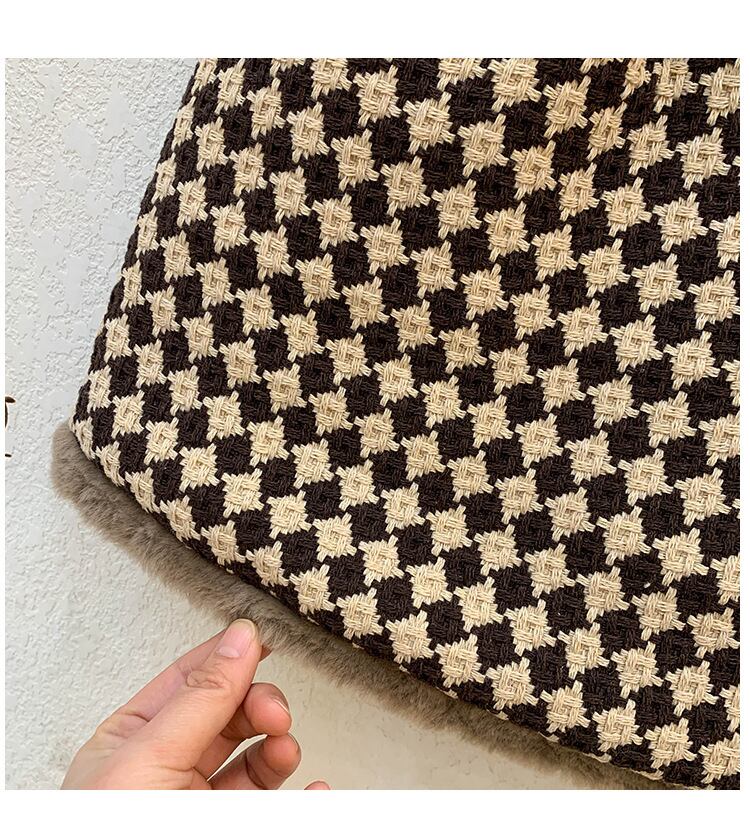・シックなチェック柄やパール風のボタンがおしゃれ。